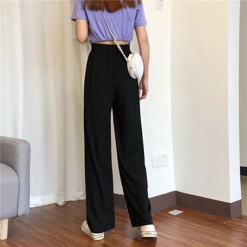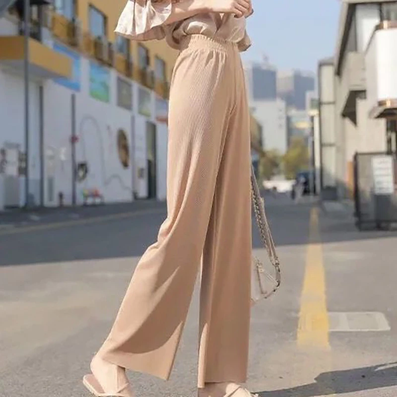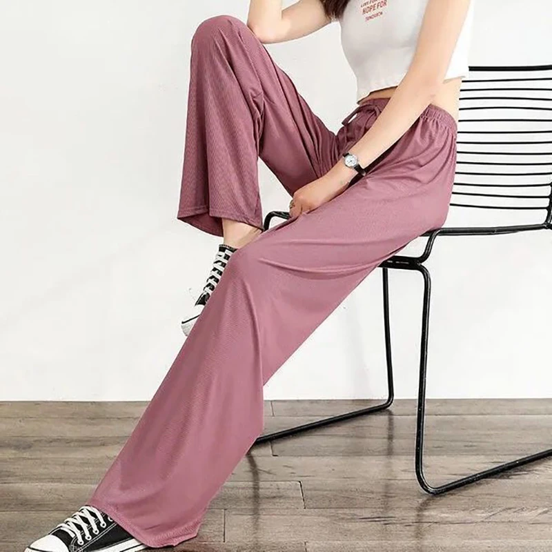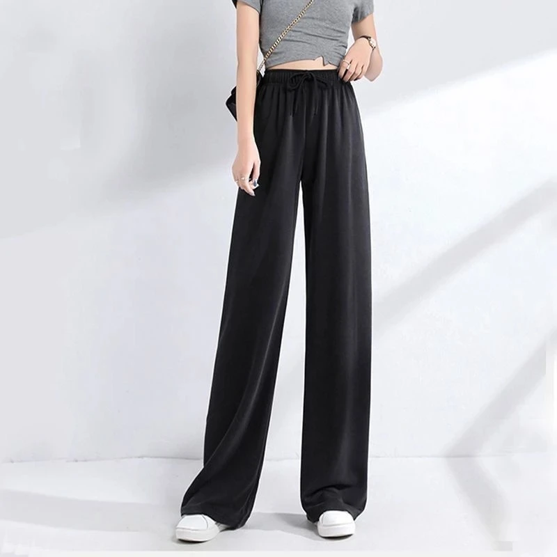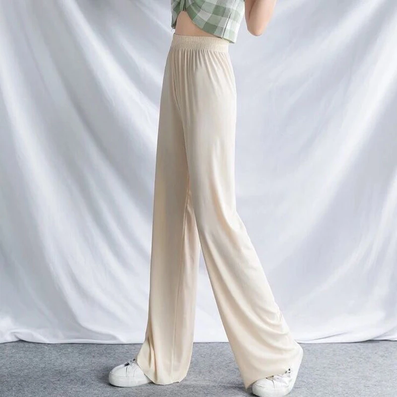 Весна 2022, женские свободные драпированные широкие брюки из ледяного шелка, женские повседневные Мягкие Универсальные брюки для танцев и йоги