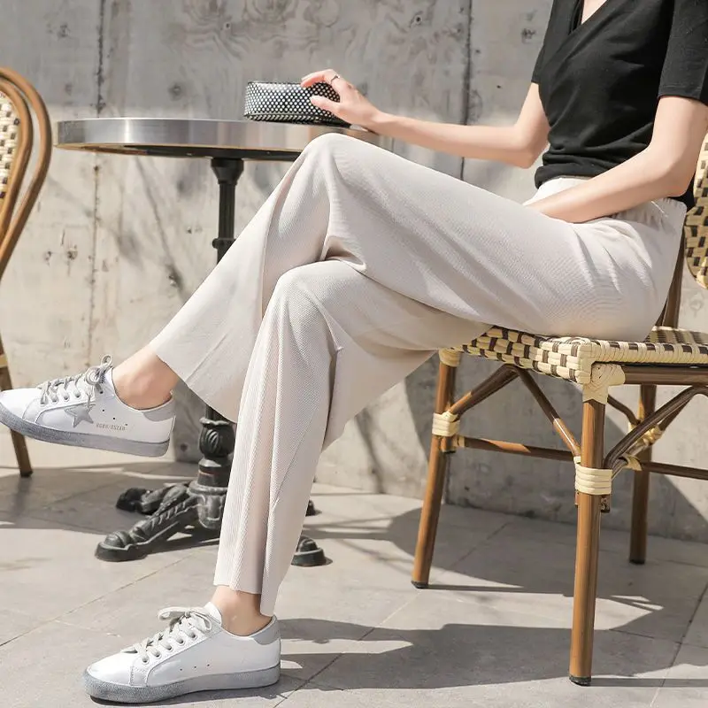 Женские брюки из ледяного шелка, женские летние свободные прямые брюки