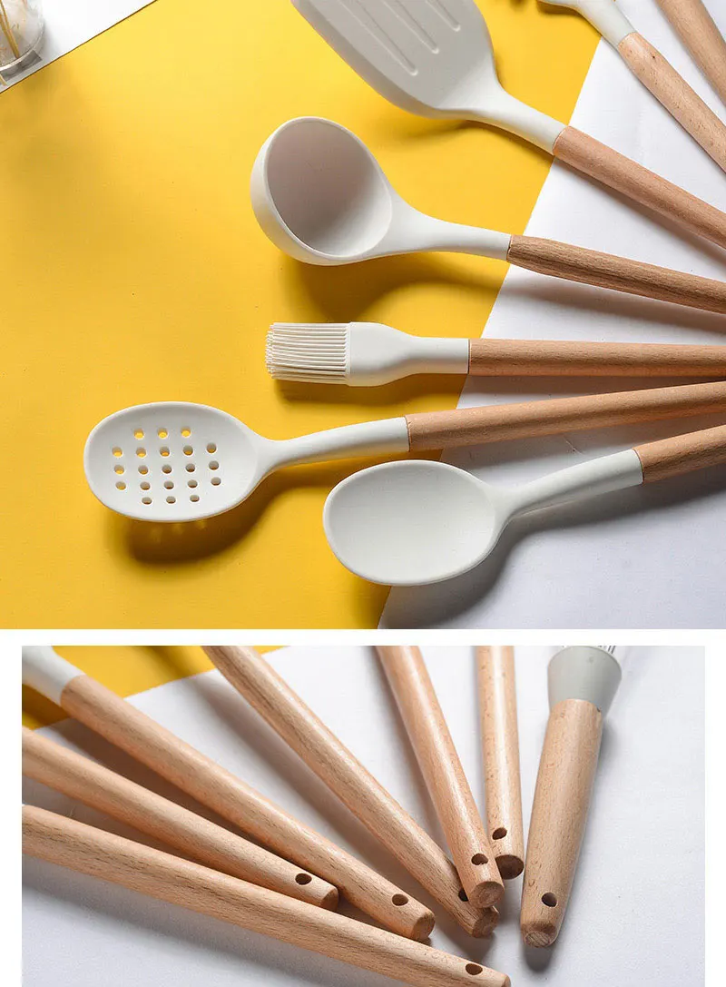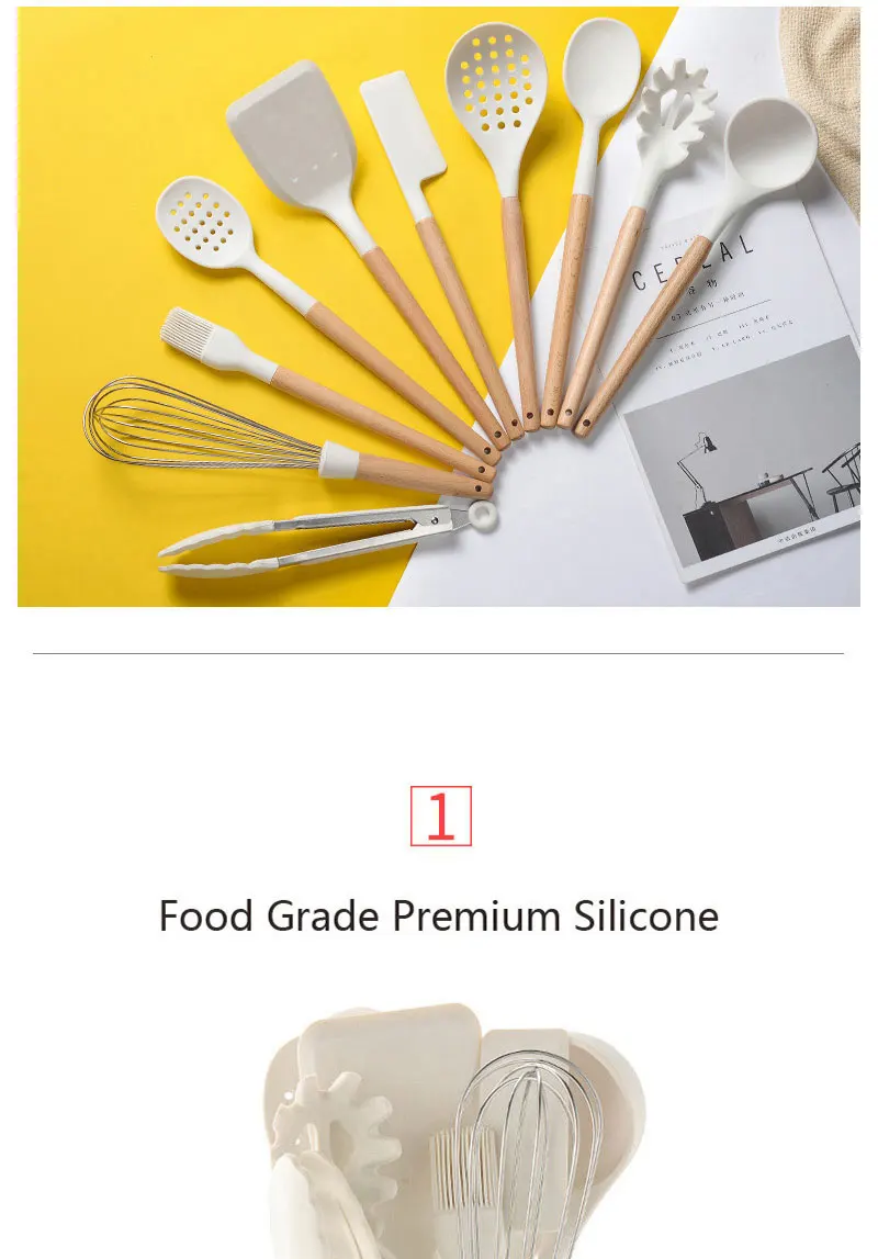 Набор кухонных принадлежностей молочно-белого цвета, устойчивый к высоким температурам, антипригарный силиконовый Комплект кухонной утвари, кухонная утварь, новинка