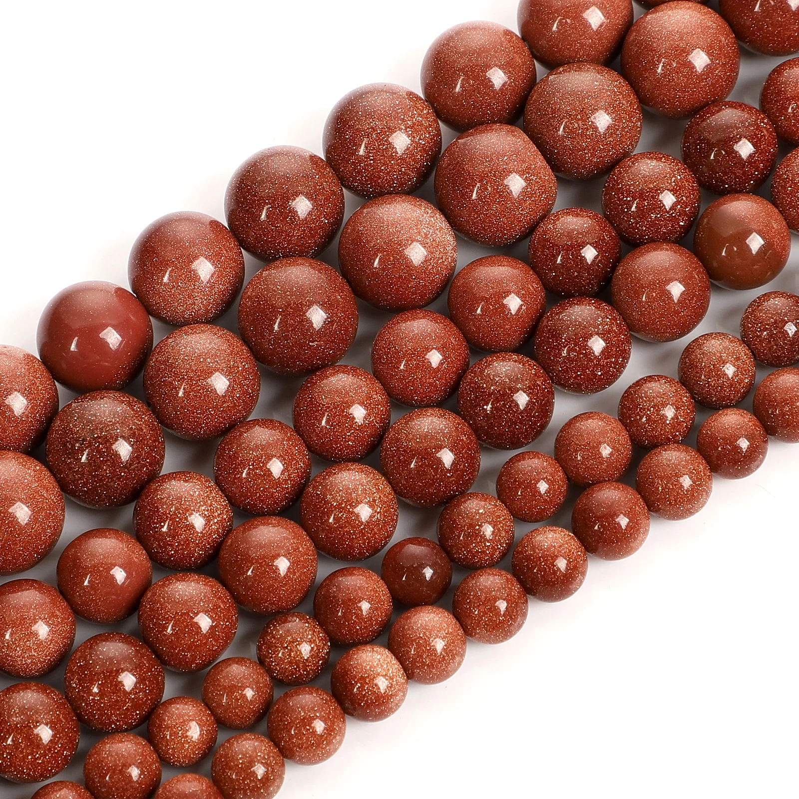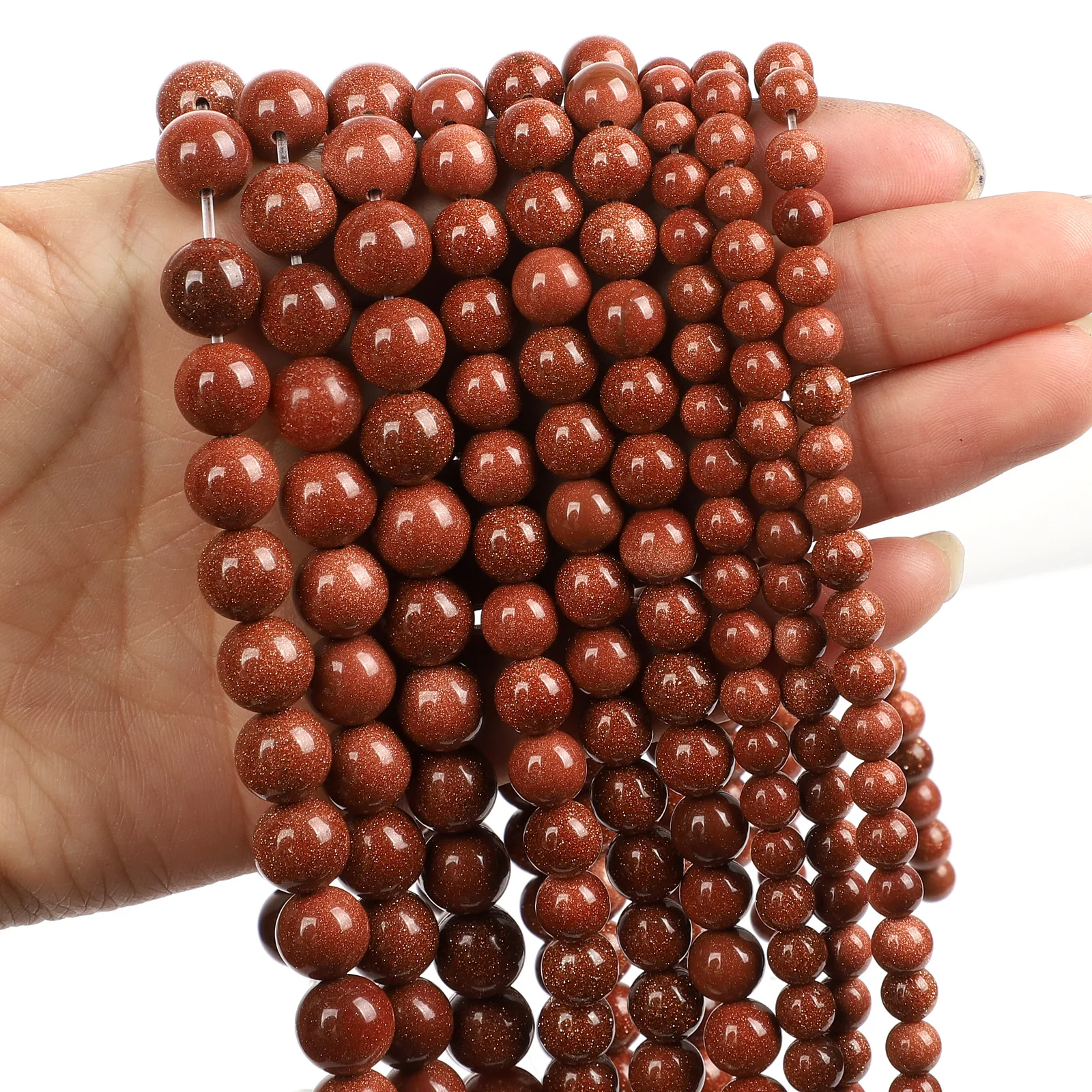Бусины круглые для украшений сделай сам, изящные золотые бусины под песок из натурального камня, для изготовления ювелирных изделий, рукоделия, нити 4681012 мм