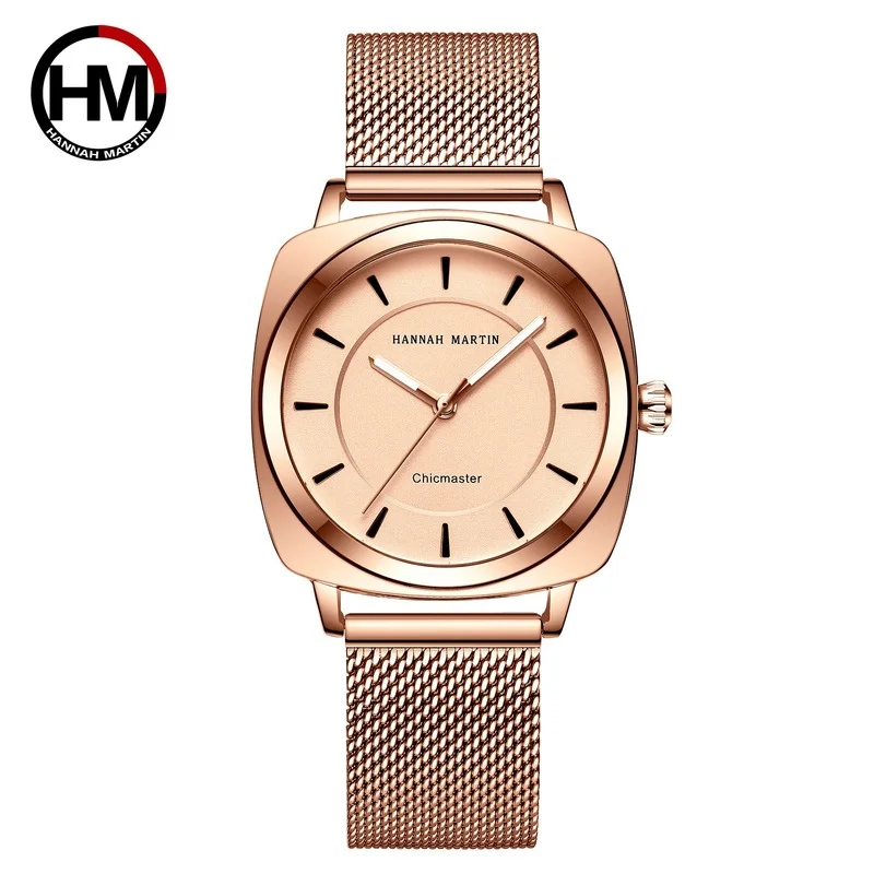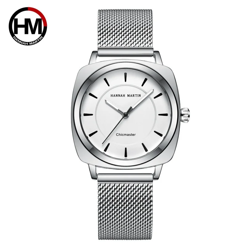 Ханна Martin дамские часы Японский часовой механизм квадратный Роскошные Кварцевые часы из нержавеющей стали пояс сетки Водонепроницаемый женские часы подарок на день рождения