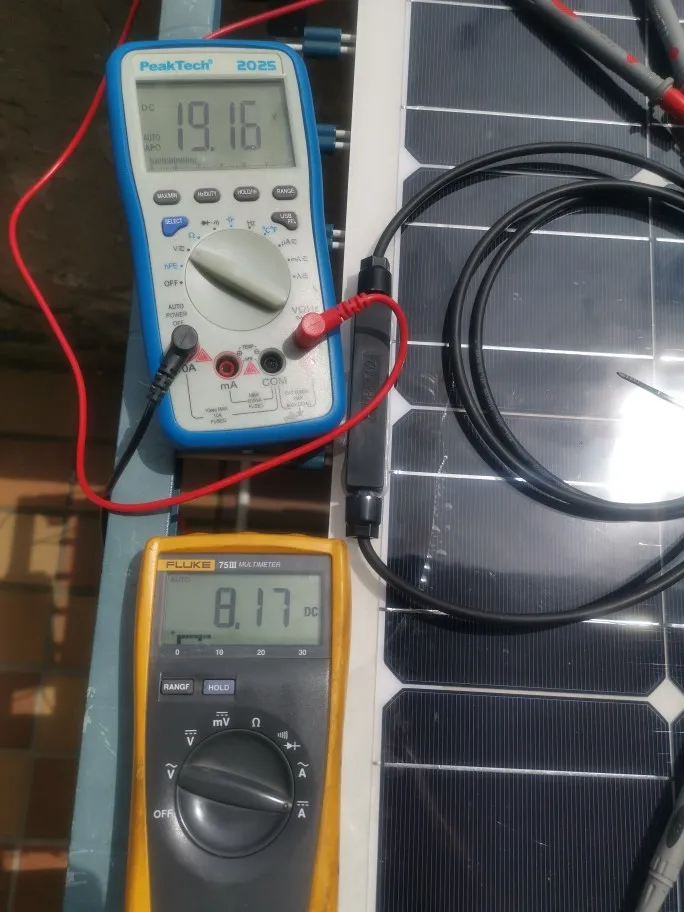 Панель работает так, как мы тестируем, но для глаз производит 100 Вт 18В и не 400 Вт, как указано. В основном на коробке c, это записанный горшок nom 100w