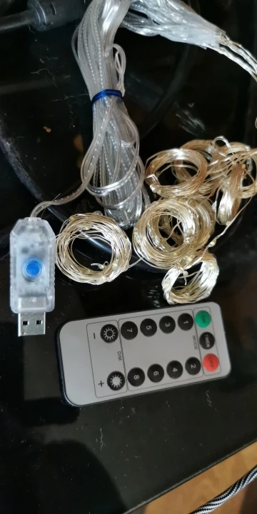 Гирлянда нежная (на тонкой проволоке лампочки), но в пульте, который к ней прилагается батарейки не было, надо купить дополнительно CR2025. Можно пользоваться без пульта, переключая режимы кнопочкой на USB разъёме. Спасибо.