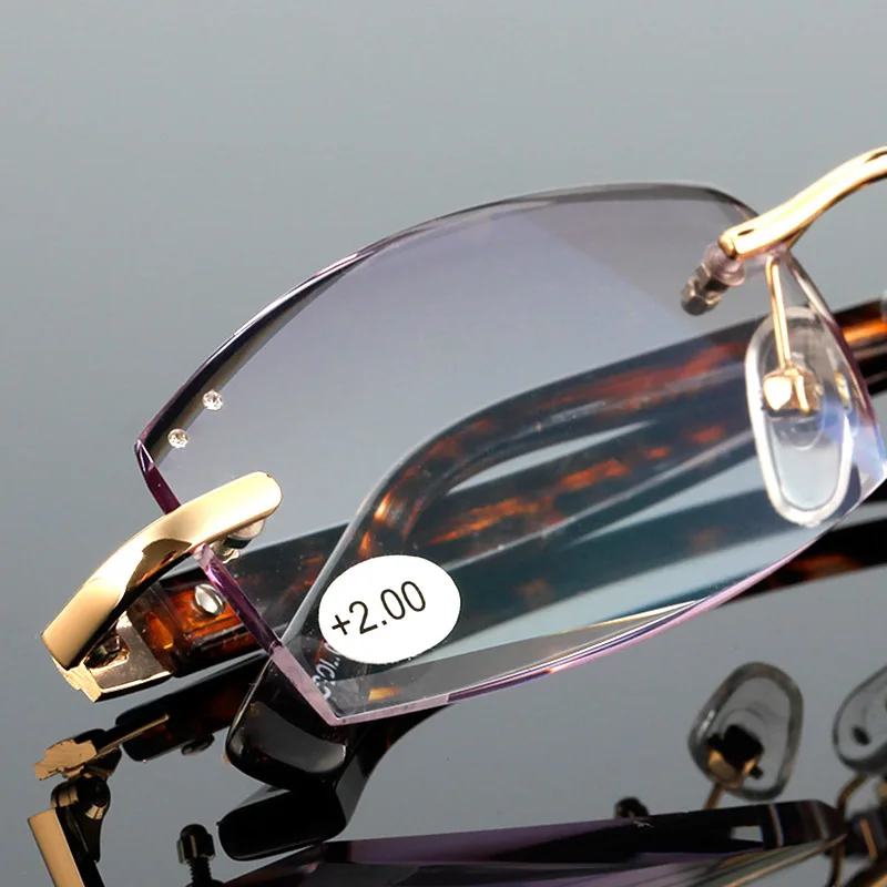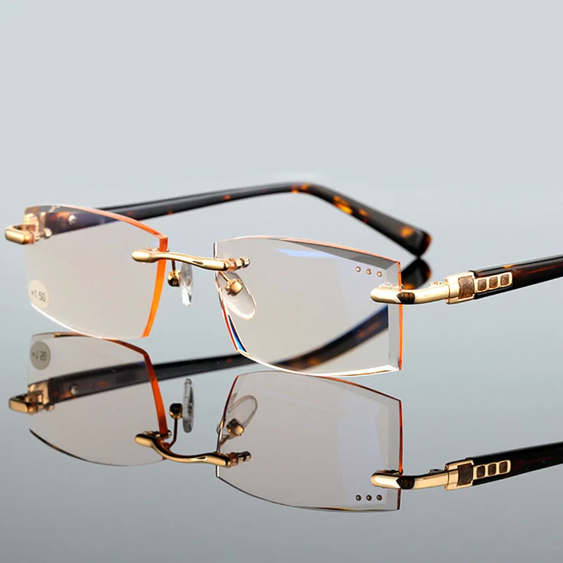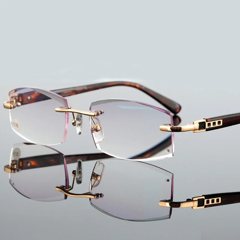 Очки для чтения без оправы с алмазной резкой, градиентные затемненные очки, светильник, вес, анти-синий светильник, пресбиопические очки для мужчин и женщин
