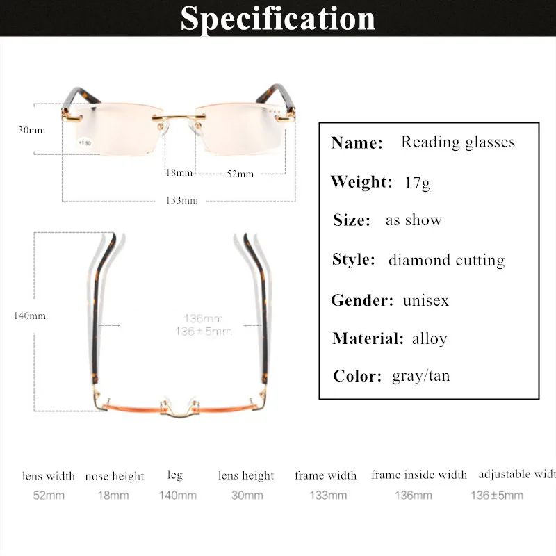 Rimless алмазные резка градиент затемненные очки для чтения светильник вес антибликовыми свойствами светильник пресбиопические очки Для мужчин Для женщин Для мужчин