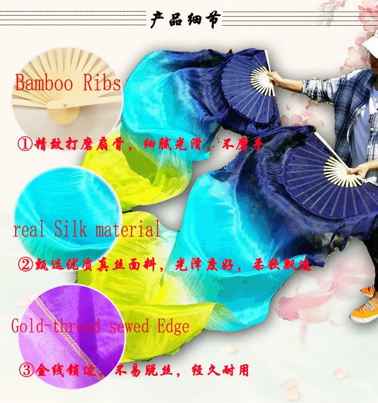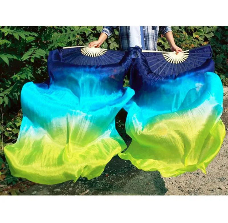 Новинка 100% натуральный шелк для танца живота веер 1 пара2 шт. Шелковый веер ручной работы для танца живота длинная фанатная Фата для китайских танцев