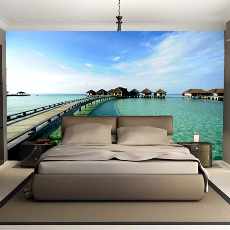 Самоклеящиеся обои Мальдивы, морской пейзаж, современный простой интерьер, гостиная, спальня, фон, Декор, Настенная водонепроницаемая