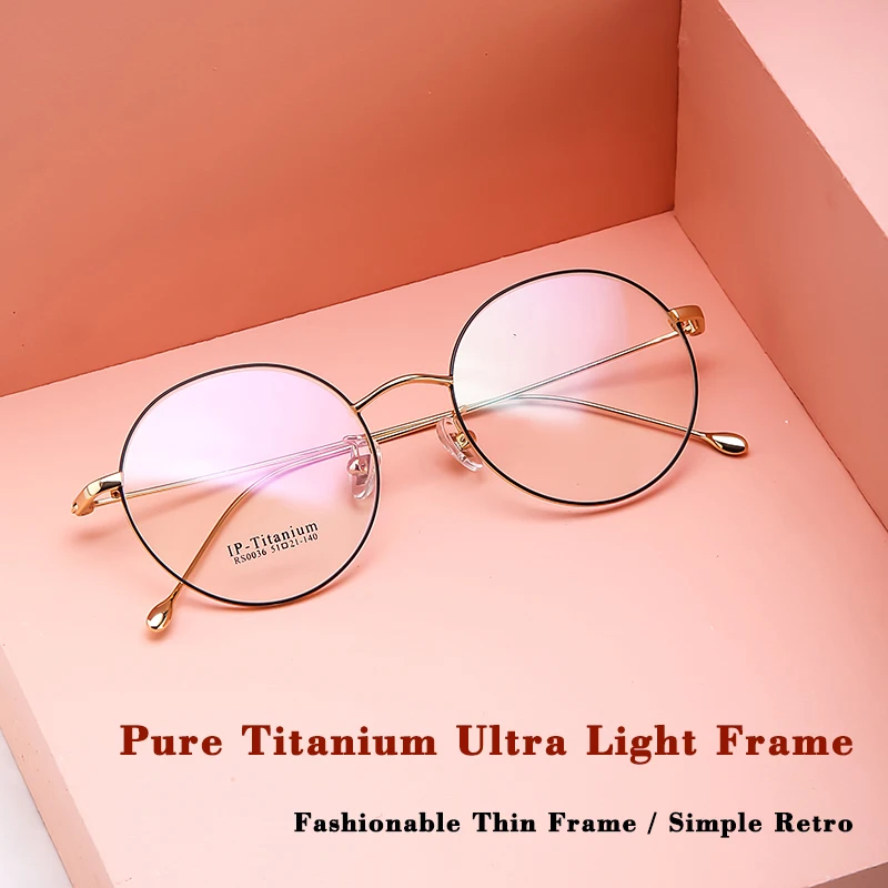 Очки в круглой оправе из чистого титана для мужчин и женщин, модные ультралегкие ретро-очки в тонкой оправе, по рецепту при близорукости