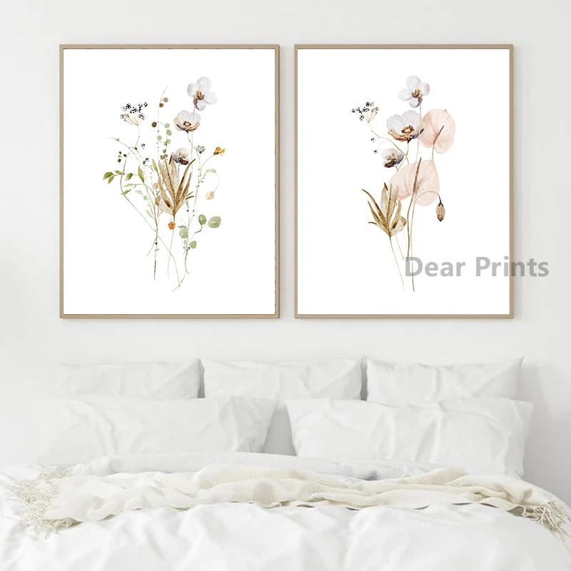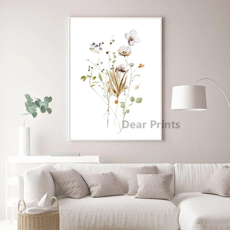 Акварельные цветочные плакаты и принты, настенная Картина на холсте...