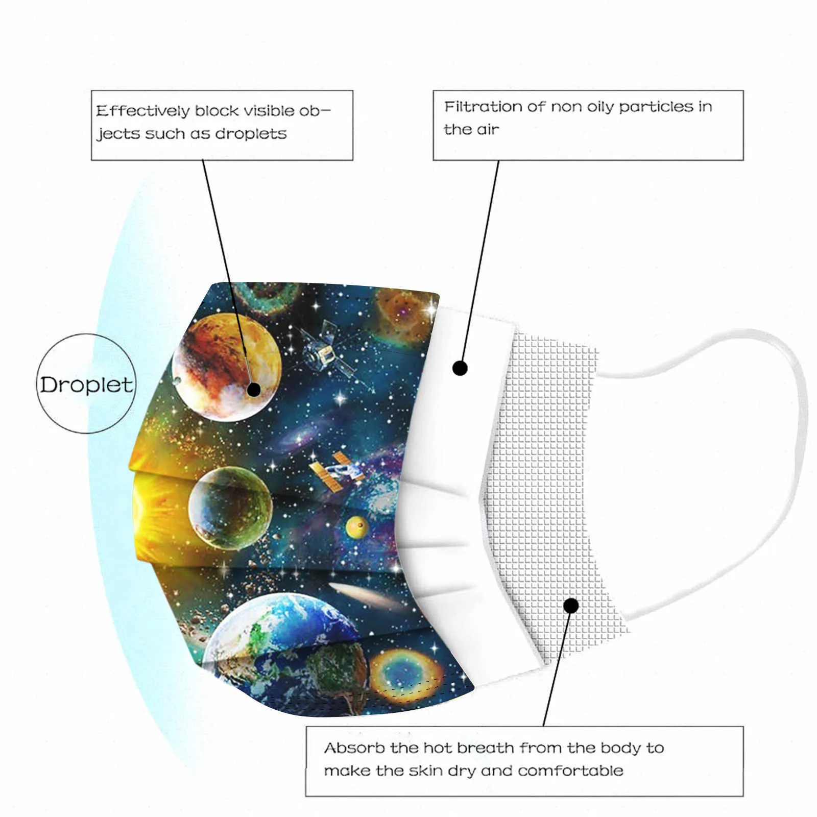 Маска детская одноразовая трехслойная, с рисунком планеты, 1050100 шт.