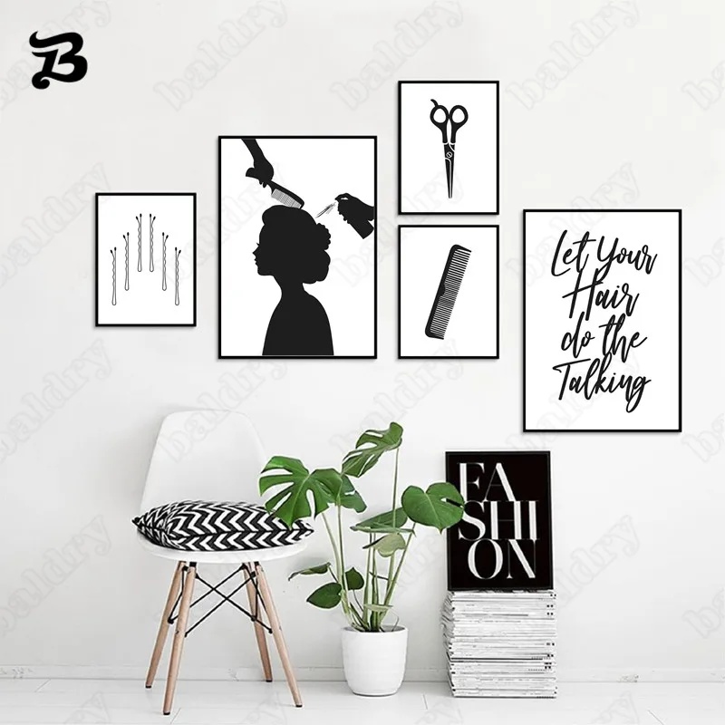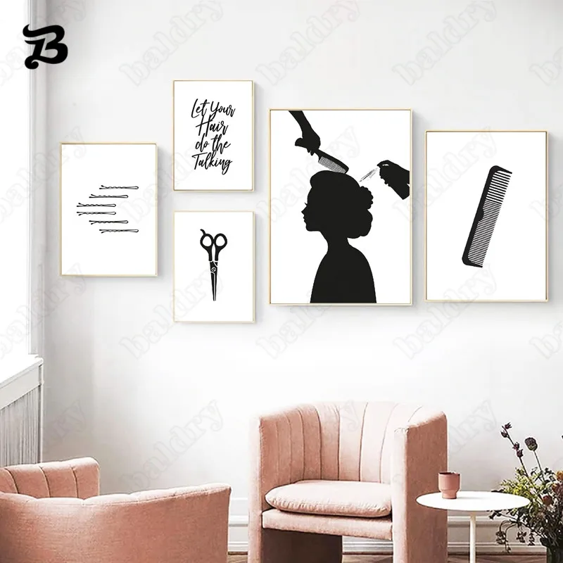 Картина на холсте с изображением парикмахерской, ножниц, настенные картины для декора
