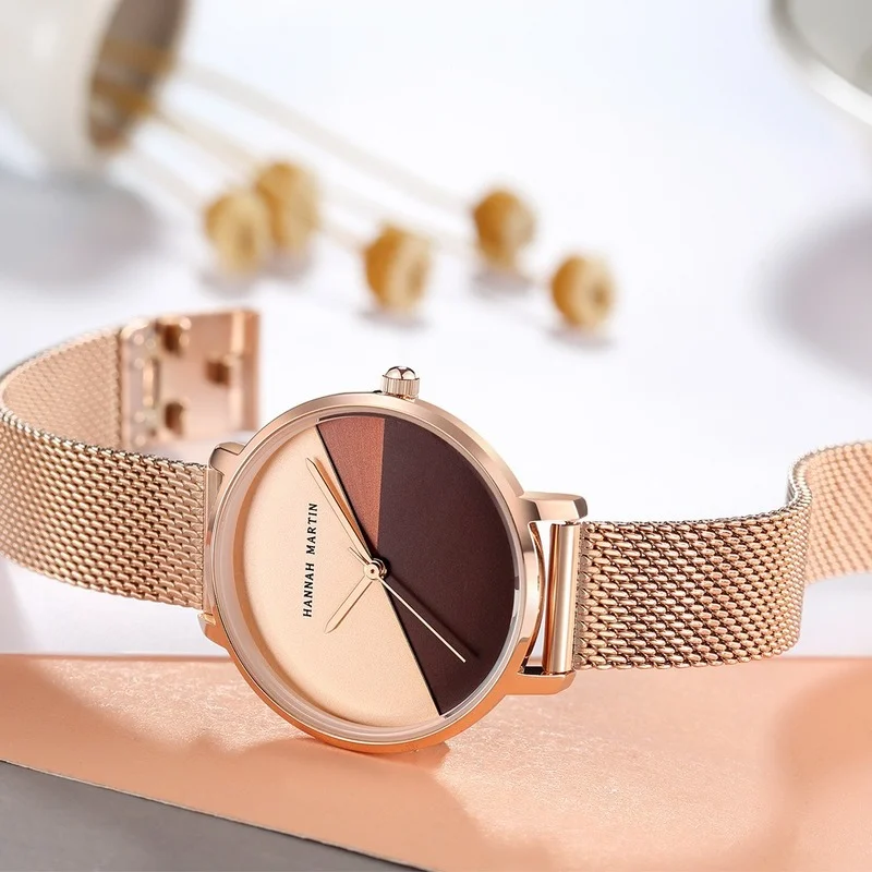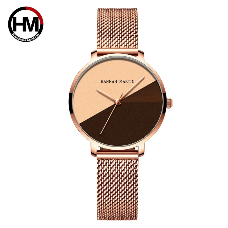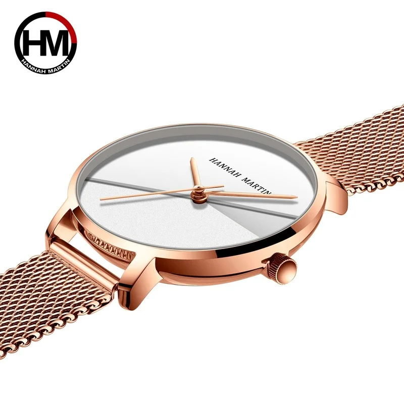 Часы Hannah Martin женские с японским механизмом, простые двусторонние Кварцевые водонепроницаемые с сетчатым ремешком из нержавеющей стали, подарок для женщин