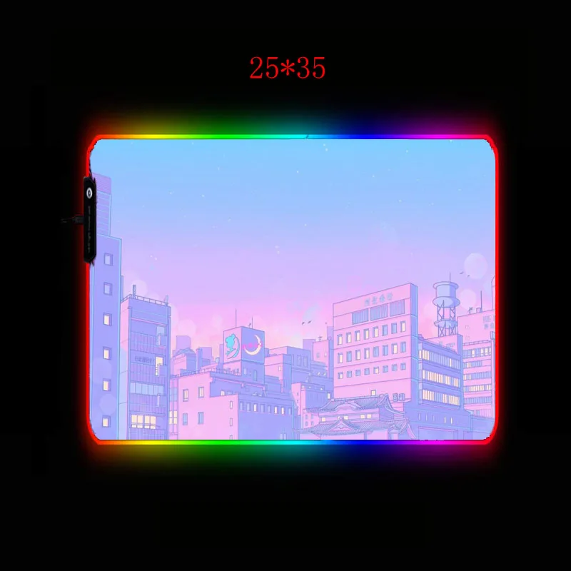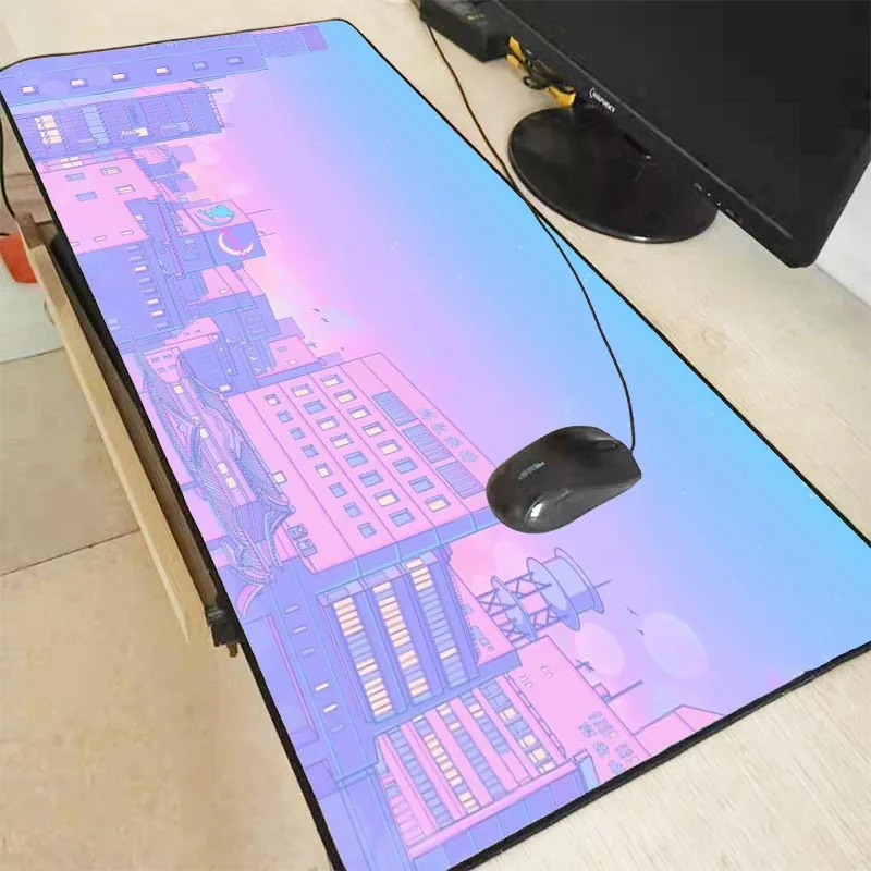 Розовый синий городской пейзаж RGB игровая Мышь Pad компьютерный геймер Мышь коврик большой игровой большой МОЗ площадку ПК Клавиатура ноутбука Настольный коврик XXL