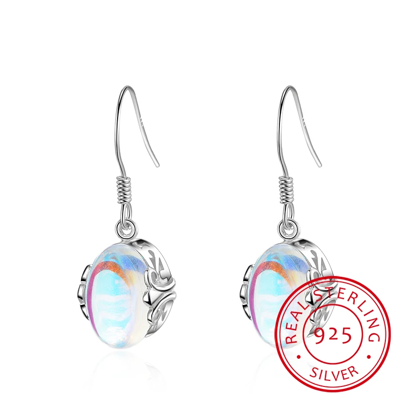 Серьги-подвески с лунным камнем женские, винтажные длинные ювелирные украшения из стерлингового серебра 925 пробы с цветными натуральными камнями
