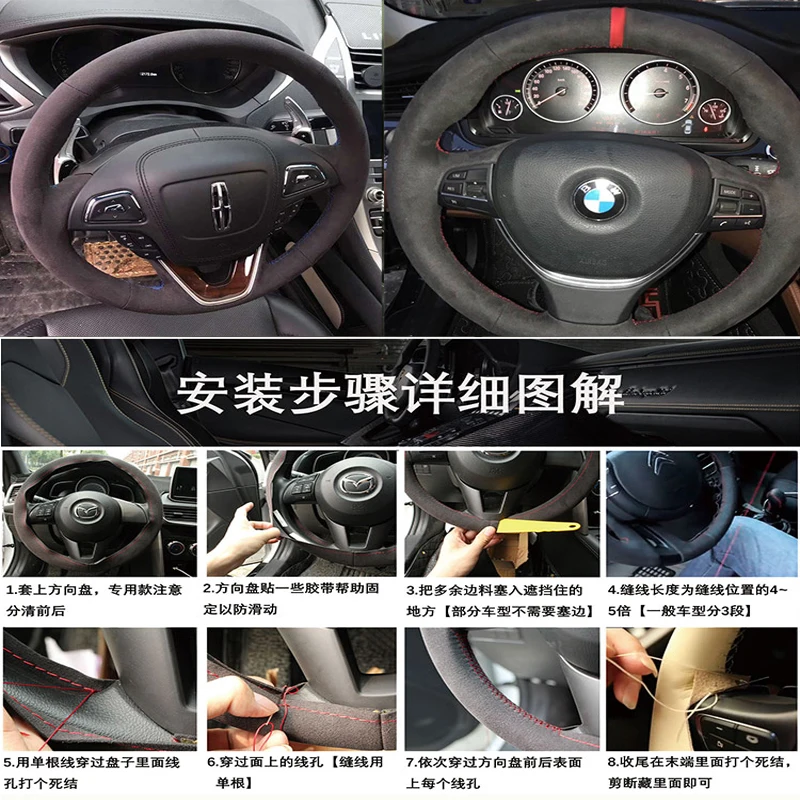 Этот чехол подходит только к оригинальному автомобильному рулю с кожей, когда вы получаете этот рулевой чехол, вы можете непосредственно установить, не нужно снимать оригинальную кожу руля!