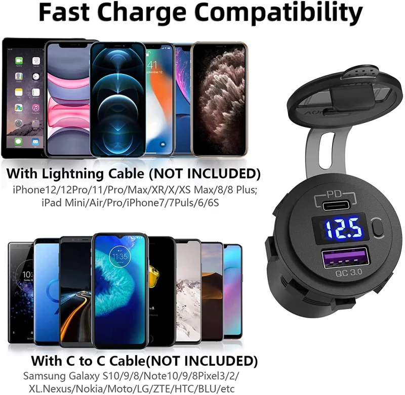Описание:Описание:- [Быстрая зарядка PD iPhone]: выходная мощность 3,0 USB-C Порт-это iPhone 12 / Mini/Pro Max/11/Pro/Max, iPhone X/XS/XR/8/8 Plus/SE, iPad, AirPods, Galaxy S10 +/S9 +/S8 + обеспечивает мощность 30 Вт. 3 раза скорость, от 0% до 50% за 30 минут. (Для быстрой зарядки iPhone: необходимо использовать USB C для кабеля передачи данных lightning.) [Порт быстрой зарядки 3,0]: Максимальная выходная мощность 18 Вт. Обеспечивает 4 раза скорость зарядки совместимых устройств. Зарядка совместимых устройств занимает всего 35 минут. Полная обратная совместимость со всеми версиями быстрой зарядки. [Переключатель Вкл/Выкл]: Эта usb-розетка 12 В-24 В имеет вкл/выкл, что может предотвратить выходную мощность, сэкономить энергию, И предотвращает слив батареи, когда она простаивает. Он также оснащен светодиодный вольтметр для контроля за автомобильным аккумулятором во времени. [Эффективный и безопасный]: Встроенный смарт-чип IC. Защитите оборудование от перенапряжения, перегрева, перегрузки или короткого замыкания. Он может интеллектуально определить требуемый ток устройства и обеспечить лучшую скорость зарядки устройства. Пройти сертификацию UL, CE и FCC.