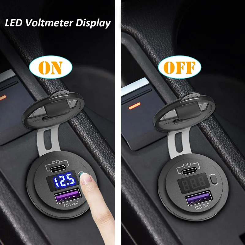 Автомобильное зарядное устройство, 12 В, 24 В, быстрая зарядка, 3,0 USB, водонепроницаемое автомобильное зарядное устройство для SUV, 18 Вт, Тип C PD, быстрое зарядное устройство с выключателем питания