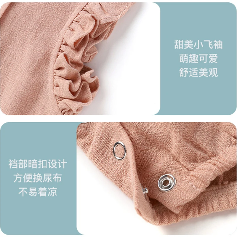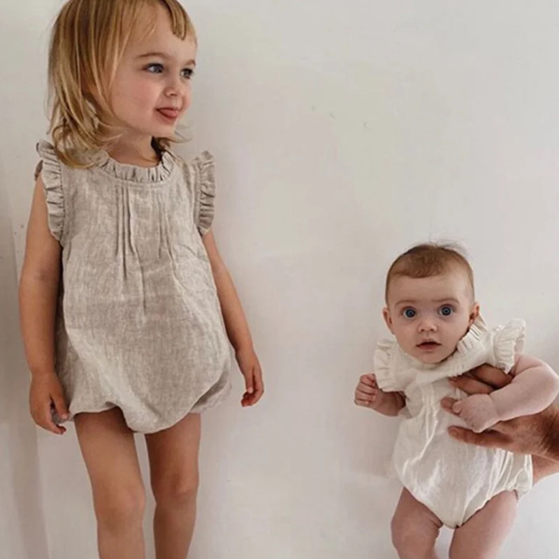 Детский комбинезон без рукавов, кружевная дышащая льняная одежда