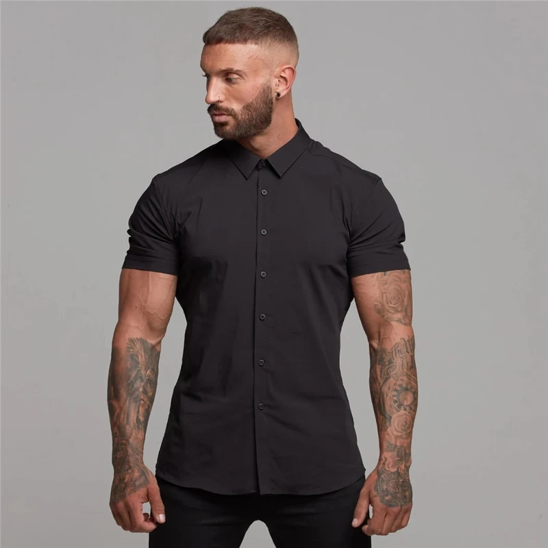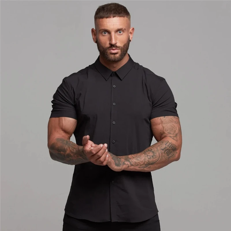 Рубашка мужская для бега, летняя деловая рубашка с коротким рукавом...