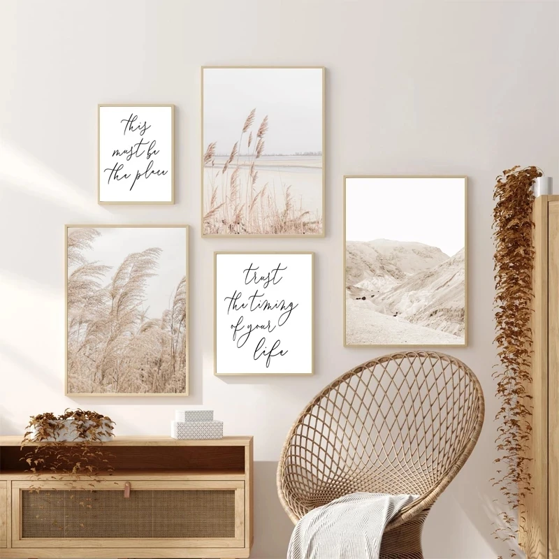 Настенная Картина на холсте бежевые тростники сушеные цветы растения в скандинавском стиле плакаты и принты пейзаж настенные картины для гостиной Декор