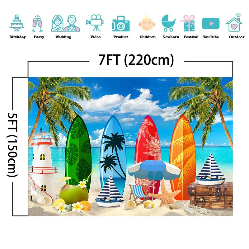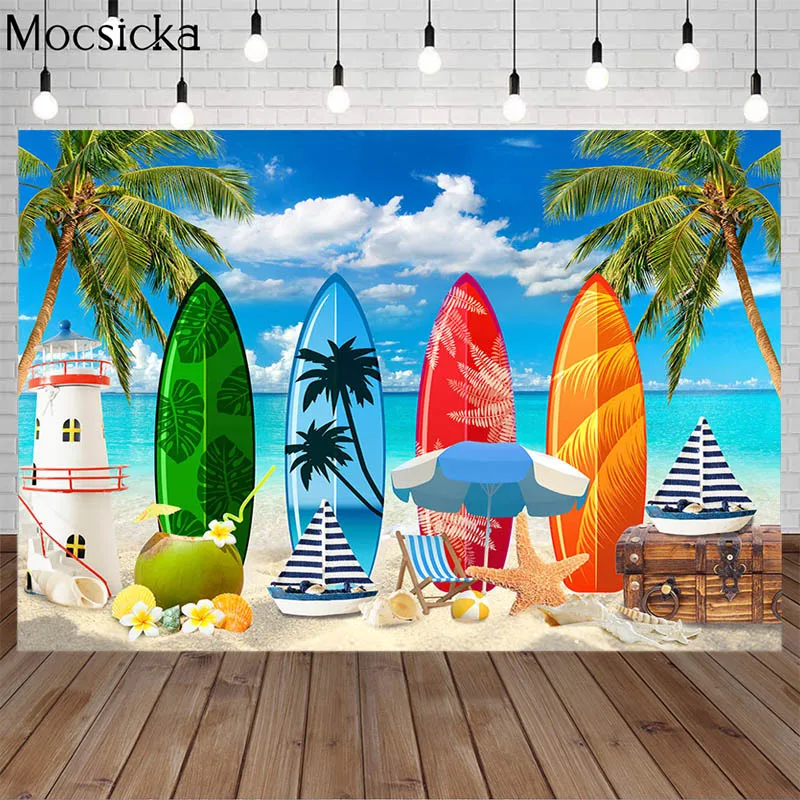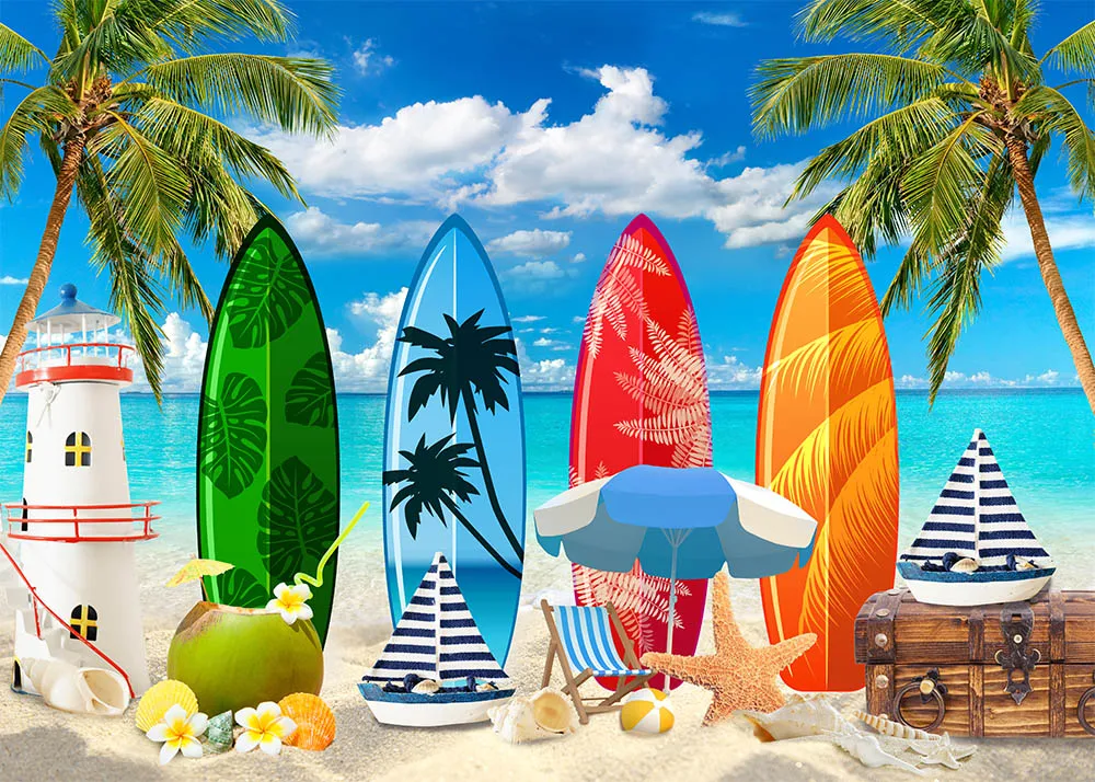 Летнего серфинга фон для фотосъемки с изображением моря песчаный пляж пальмы с декорацией задние планы для фотографирования для серфинга фон вечерние ребенка для портретной съемки в фотостудии