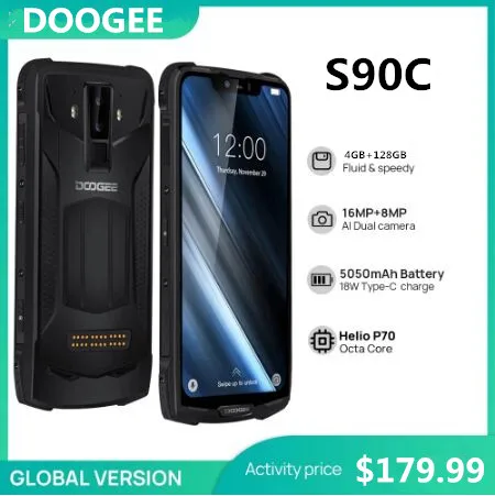 Смартфон DOOGEE S90C 6,18 дюйма, IP68IP69K, Helio P70 восемь ядер, 4 Гб + 128 ГБ, 5050 мАч, NFC, Android мобильный телефон