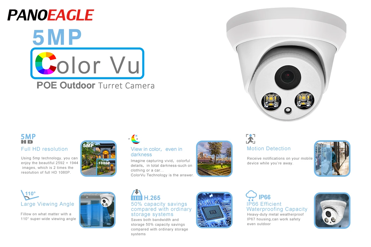 Hikvision совместимые наборы 4 шт. 5MP POE IP-камера ColorVu Hikvi...
