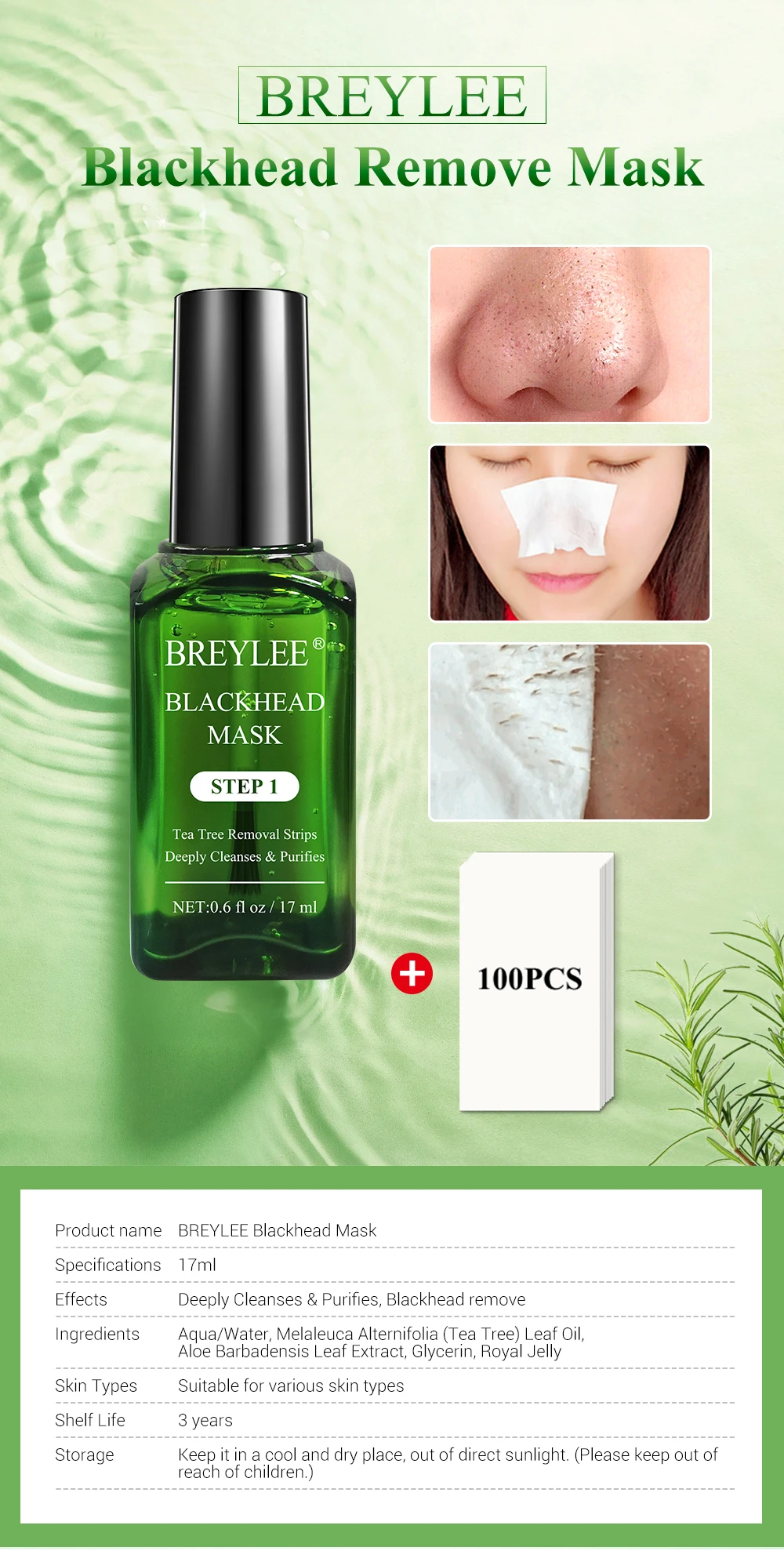 Сыворотка BREYLEE для удаления черных точек, маска для пилинга лица, сужение пор, эссенция, контроль жирности лица, уход за кожей