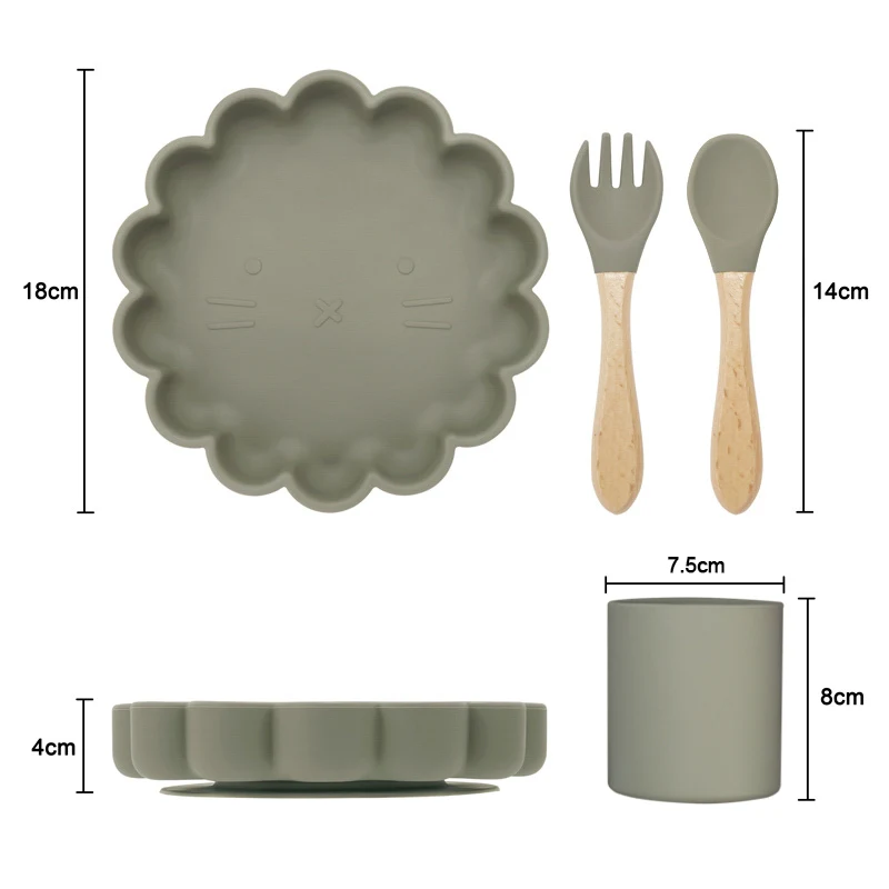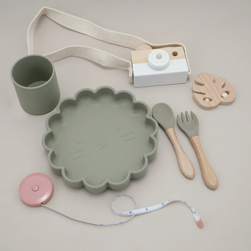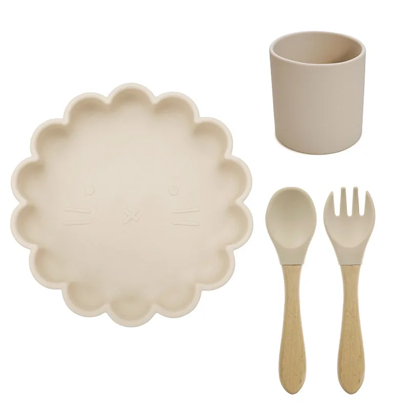 Милые аксессуары для новорожденных, детская посуда, обеденный набор для кормления ребенка, тарелки, тренировочный поднос для еды, вилка, ложка, чашка для питья