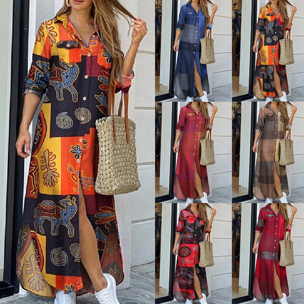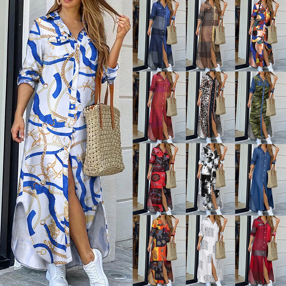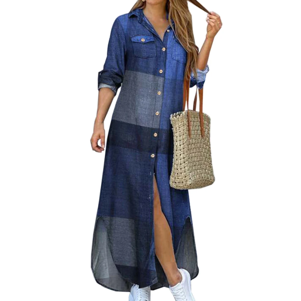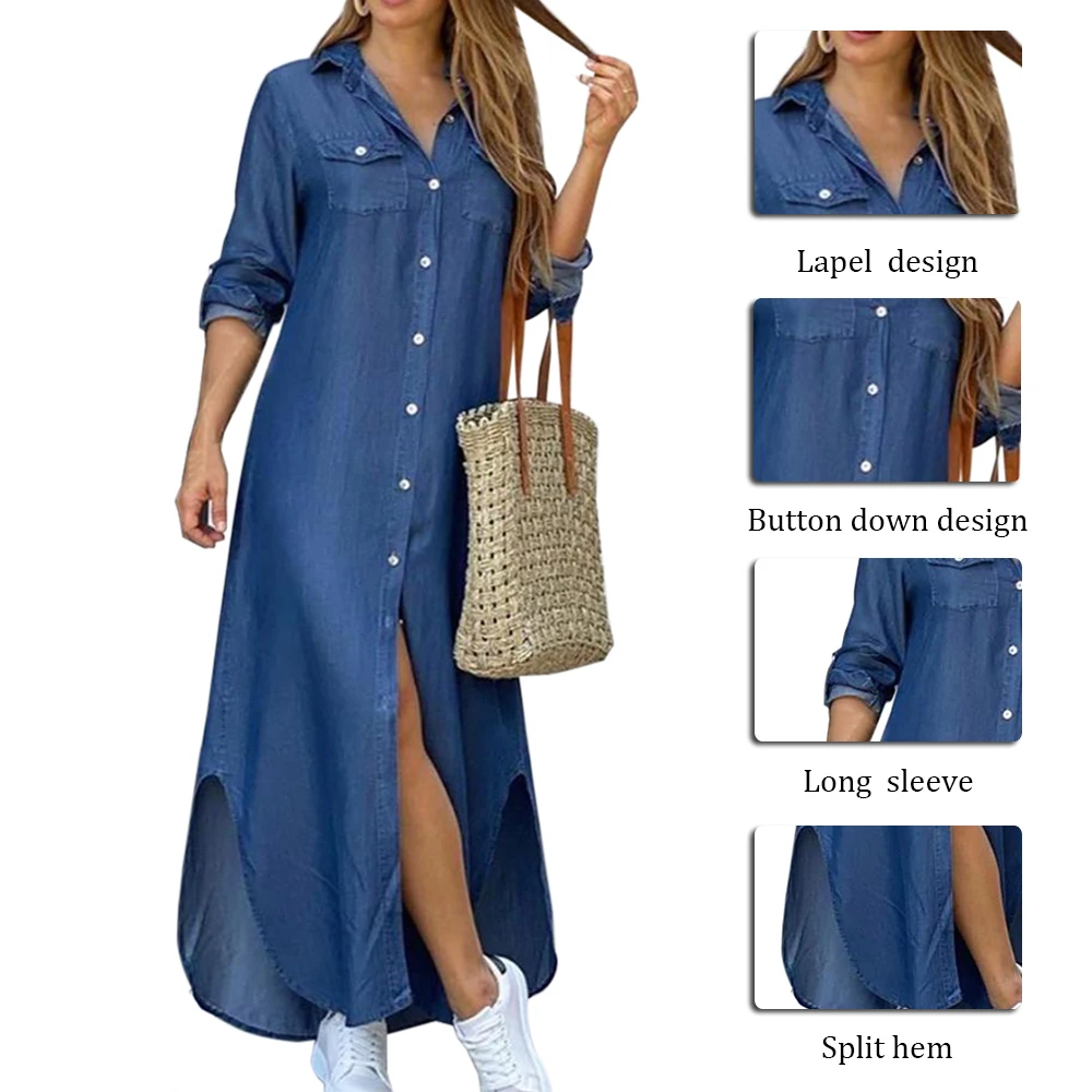 Женское джинсовое платье макси, модное пикантное длинное платье с отворотами и разрезом, корейское летнее платье, размера плюс, 2021 # X