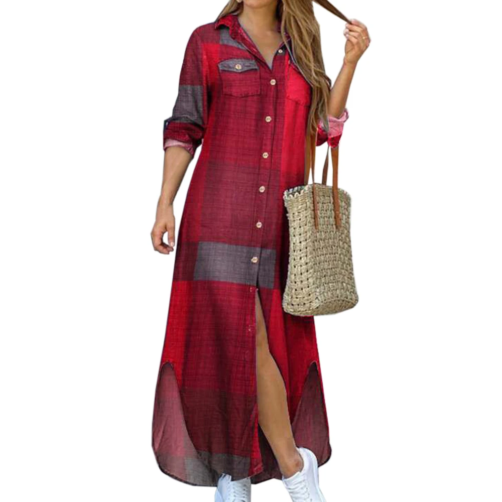 Особенности: модное сексуальное платье-рубашка в клетку с отложным воротником, красивый дизайн. Материал: полиэстер Цвет: хаки, желтый, красный, винно-красный, синий, винно-красный + серый Применение: идеально подходит для путешествий, танцев, спорта, йоги Посылка: платье