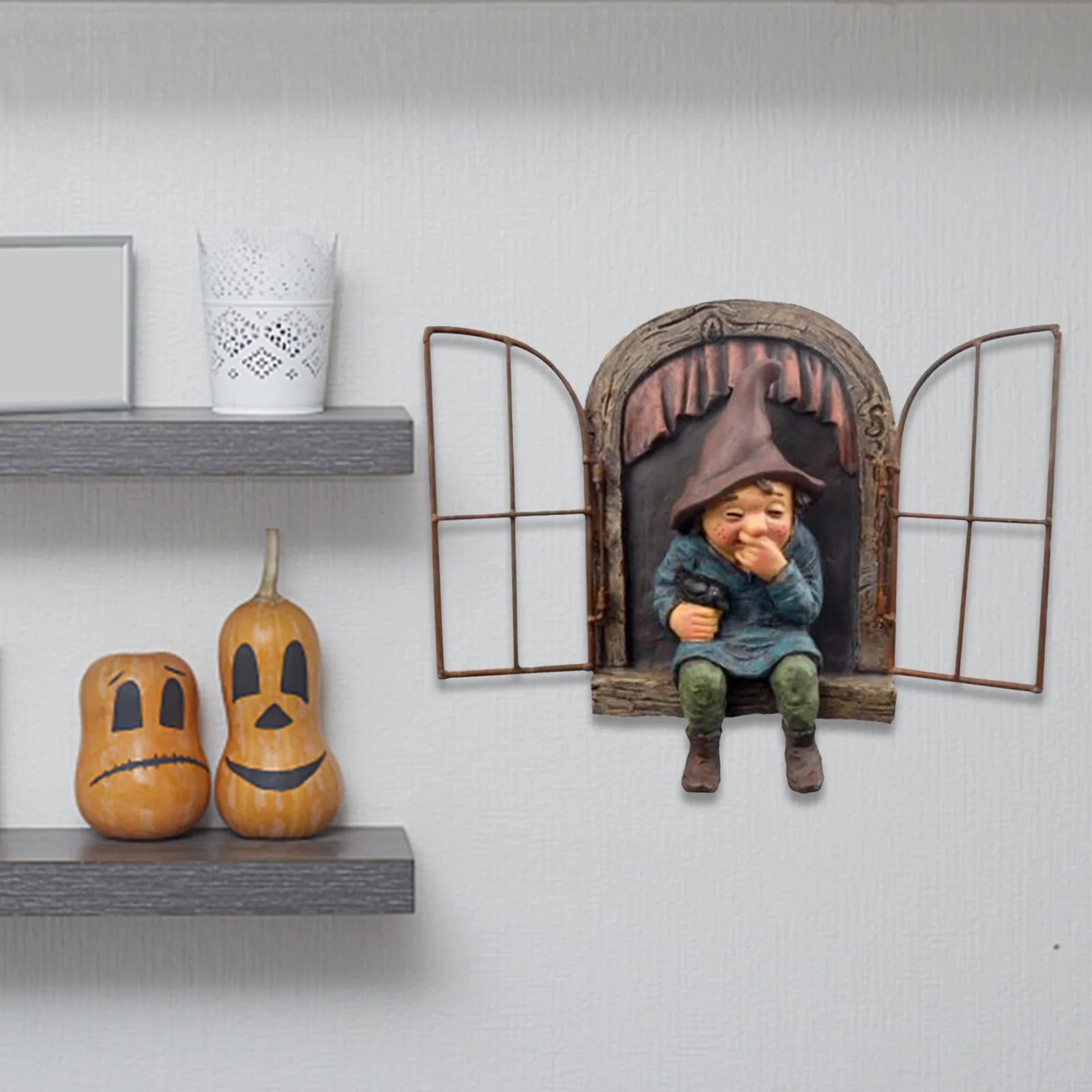 Миниатюрные Сказочный гном фигурки на окно, дверь, эльф, дом для двора, искусство, садовые скульптурные статуи, Декор, уличное украшение, сказочный сад
