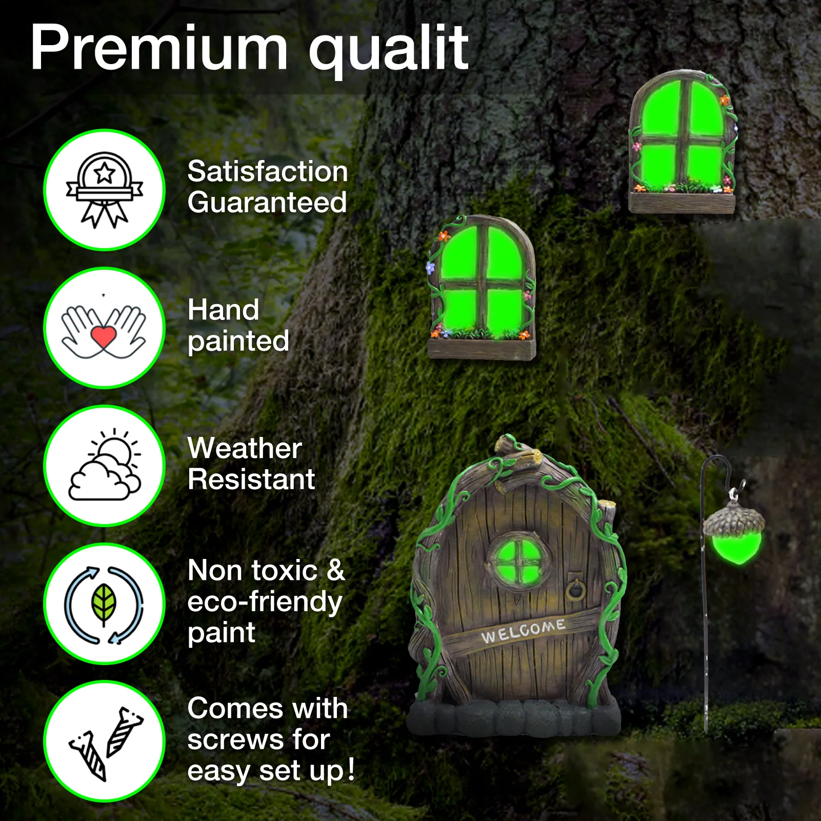 3. Качество гарантировано: ваш новый набор волшебных дверей изготовлен из атмосферостойкой морозостойкой смолы и может быть отображен как в помещении, так и на улице в любое время года. Окрашенные вручную нетоксичной и экологичной краской, окна и фонарь светится в темноте так что нет солнечных батарей для замены. Легко Прикрепите эту секретную сказочную дверь к любой поверхности с помощью слота замочной скважины и простых установочных винтов.