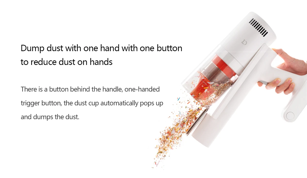 Сброс пыли одной рукой с помощью одной кнопки для уменьшения пыли на руках Есть кнопка за ручкой, кнопка триггера с одной рукой, пылезащитный стакан автоматически выскакивает и сбрасывает пыль.