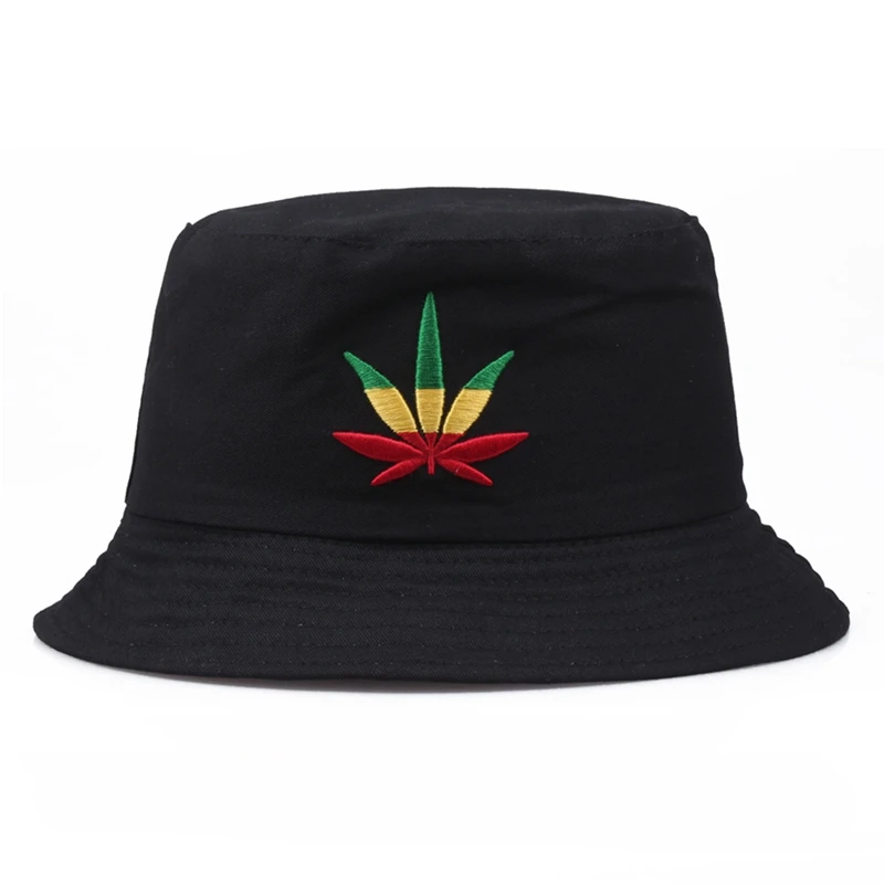 Панама в стиле хип-хоп, хлопковая, с вышивкой в виде кленовых листьев