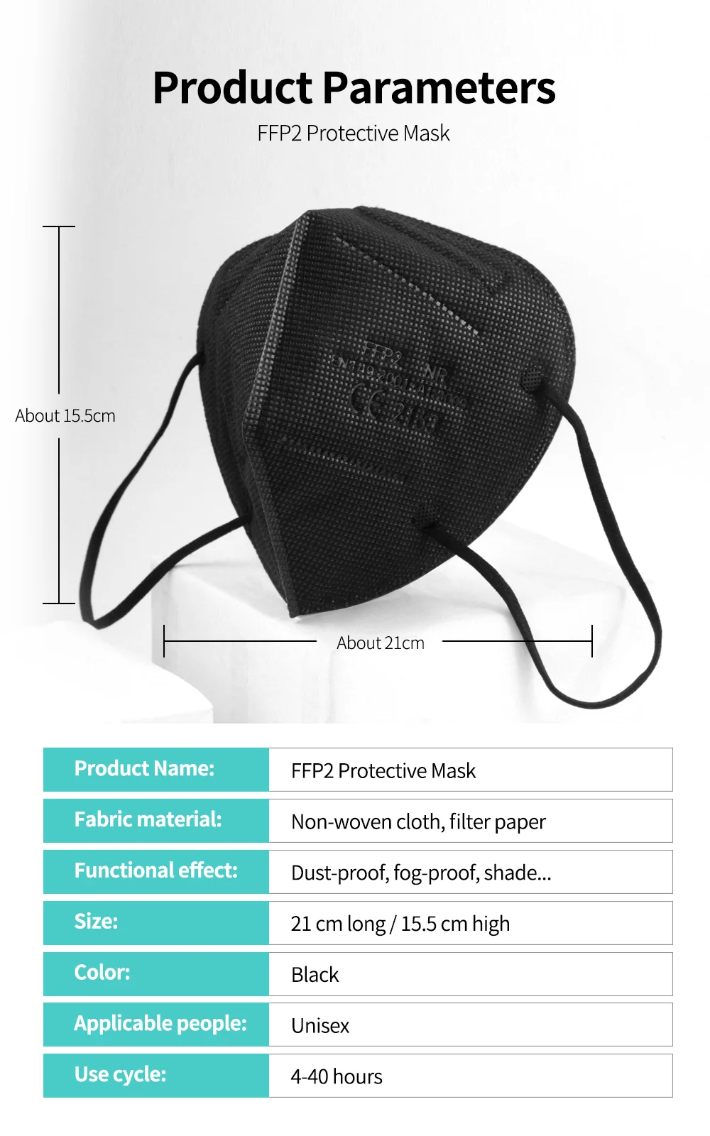 Респираторная маска KN95 для взрослых 5-100 шт., респираторная маска FPP2 Homologada FPP2, многоразовая KN95 черная маска