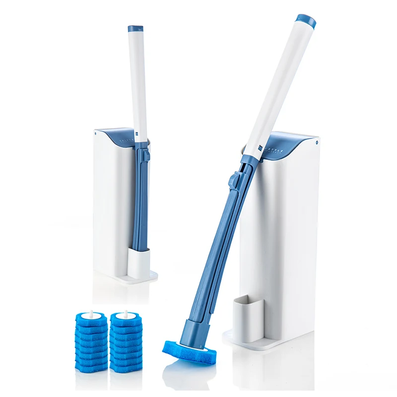 1. Одноразовая щётка для туалета с чистящей щеткой. Нажмите синюю кнопку можно легко заменить, не нужно касаться, легко сэкономить. 2. Конструкция арочной ручки для удобного хранения, легко чистить угол унитаза. 3. Водорастворимая головка щетки быстро снимает дезактивационный фактор при воздействии воды. Сильное обеззараживание не повреждает глазурь. 4. Когда головка кисти используется, ее можно отбросить. Его можно сбросить в мусорное ведро или сбросить в унитаз, чтобы смыть его, что не вызовет закупорку. 5. С базой для хранения, без грязи, чистый и гигиеничный после использования.