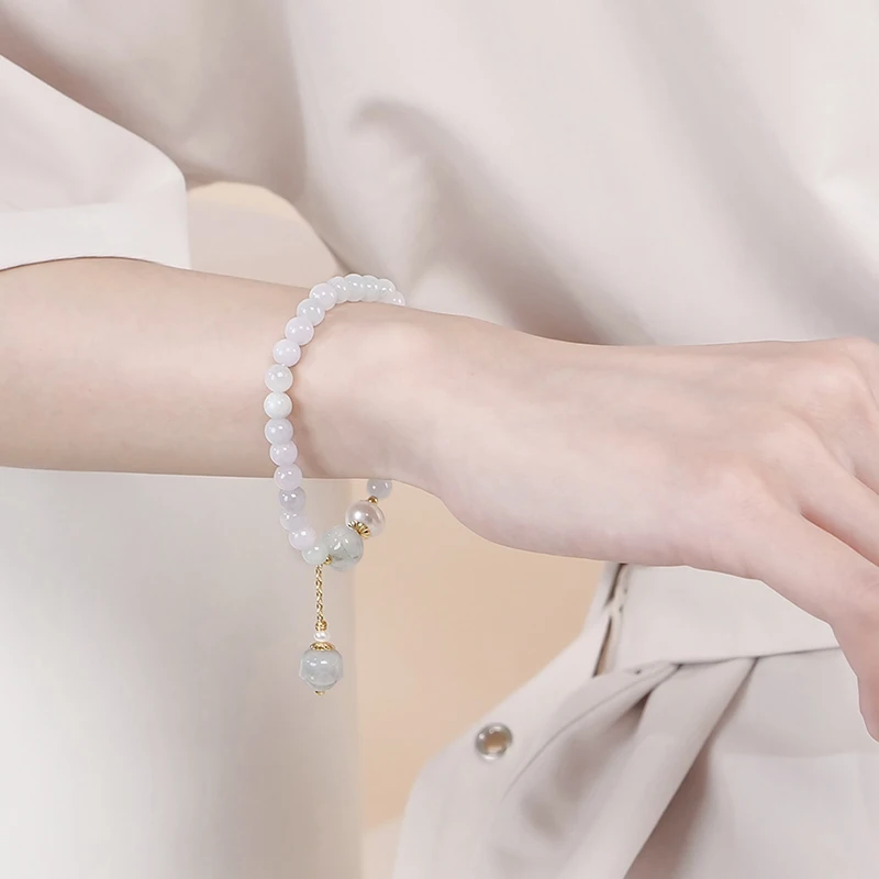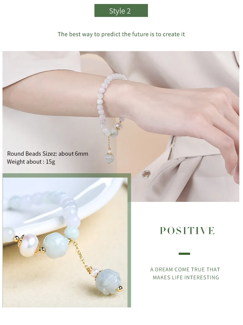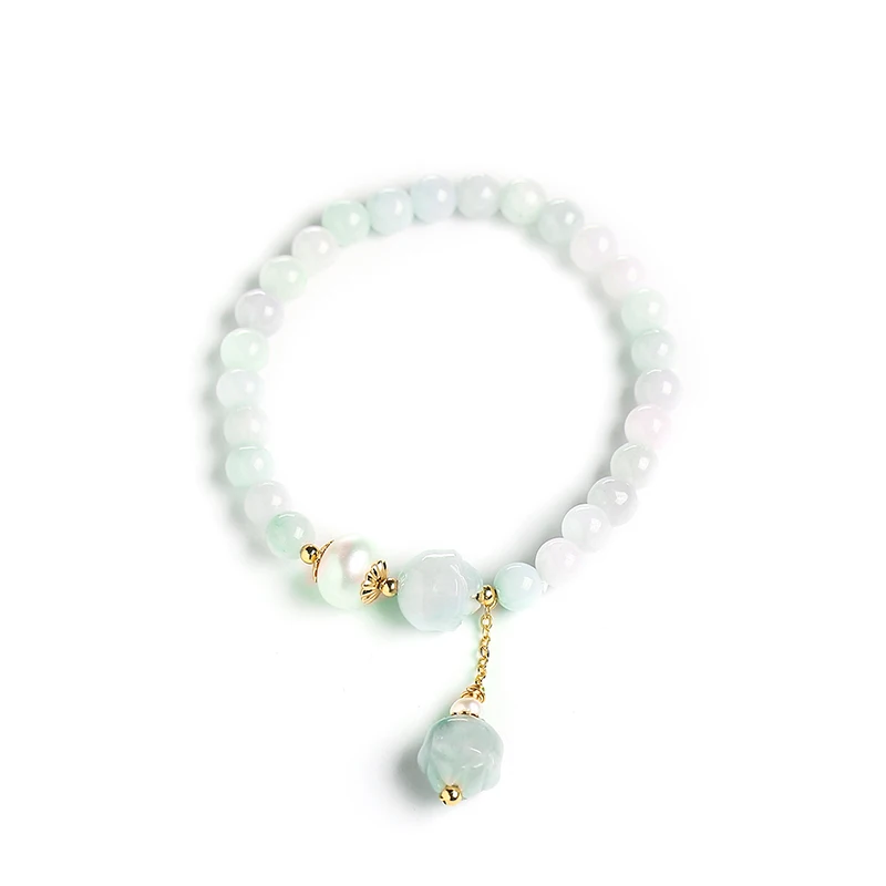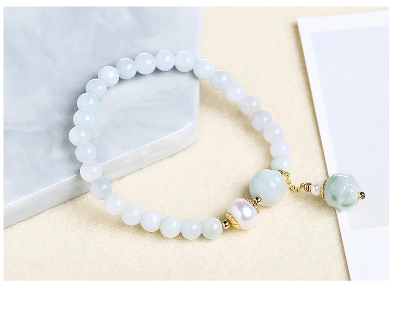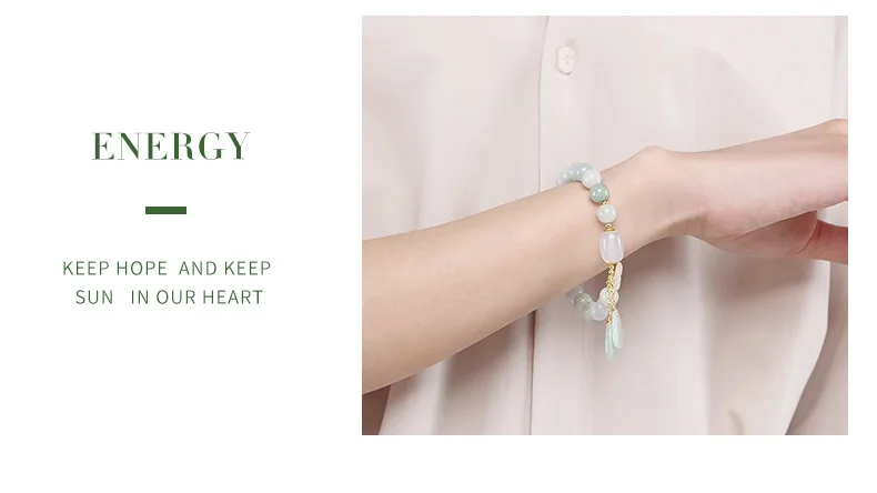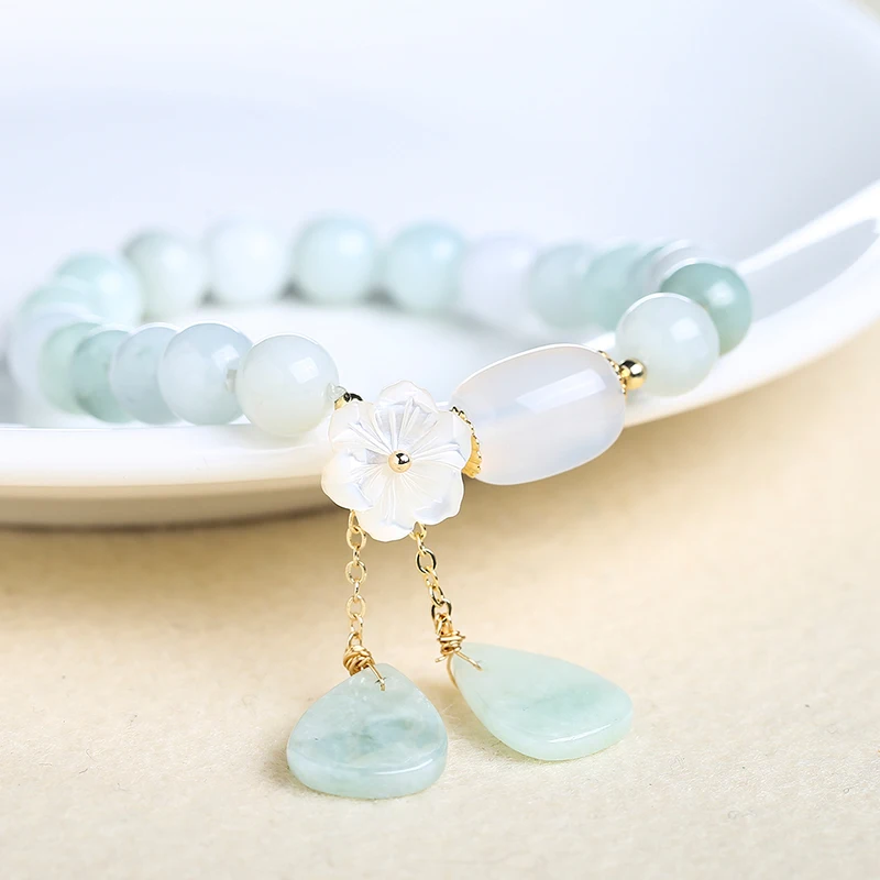 JD натурального нефрита Изумрудный эластичный браслет из бусин браслет шарма ювелирных изделий для занятий йогой в форме капли воды, натуральная основа, цветок, кулон браслет для женщин