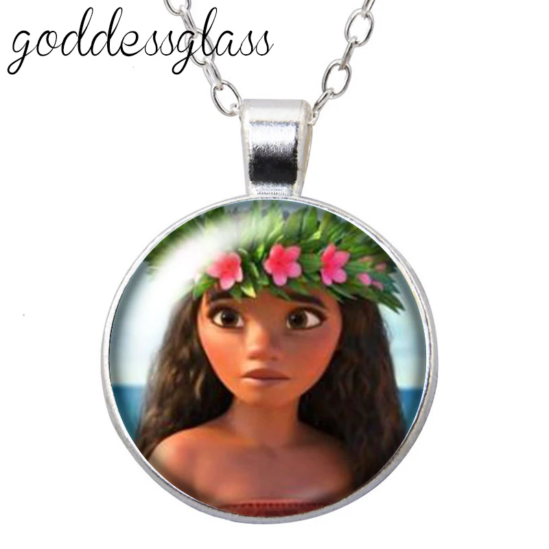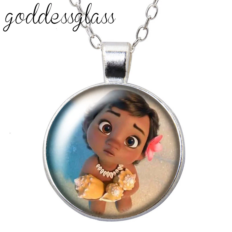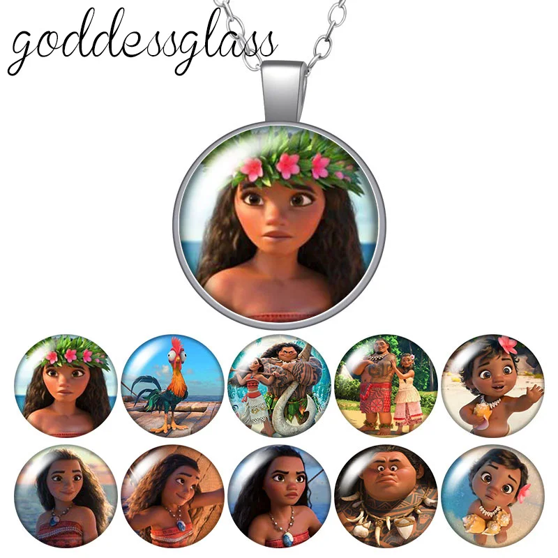 Disney Princess Moana Maui Tui Sina, круглый стеклянный кабошон, посеребренныйхрустальный кулон, ожерелье, Ювелирное Украшение для подарка