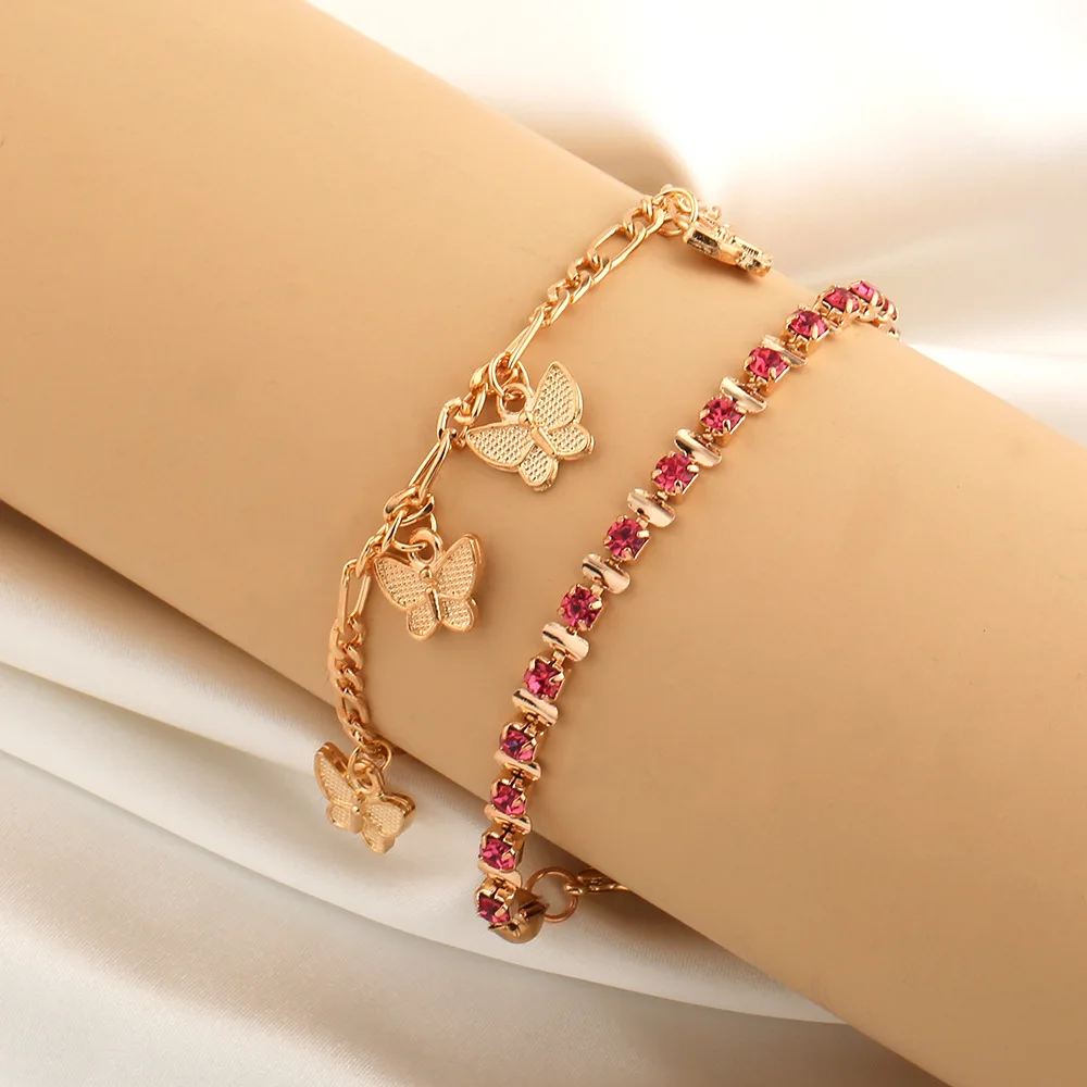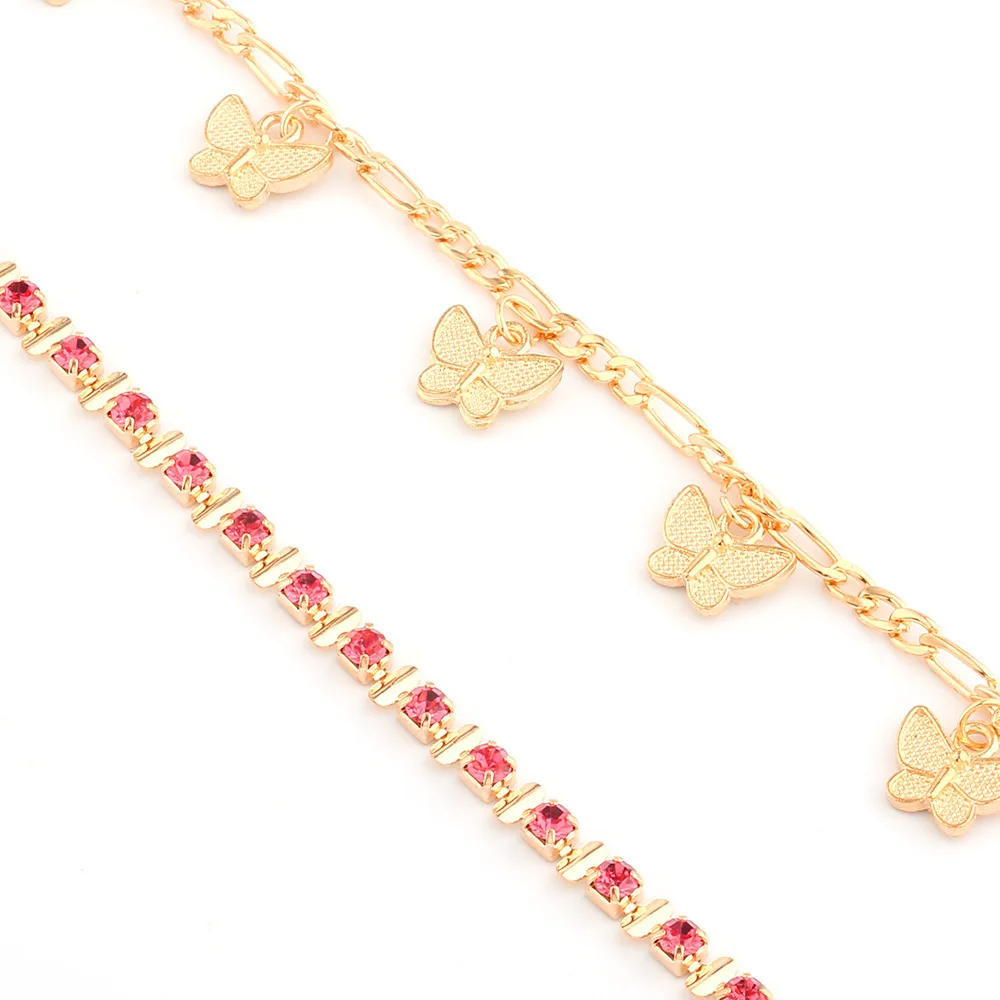 Браслет на ногу Женский, Красный Кристалл, пляжный, золотой цвет, Бабочка, Очаровательная бижутерия, 2021