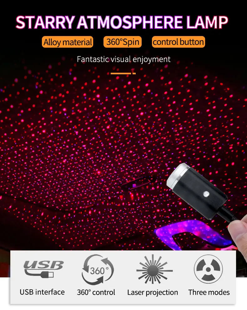 Мини-светодиод машины крыши звезда светильник Лазерная атмосфера окружающего проектор USB декоративные настольные лампы несколько салона Декор Светильник красные, синие
