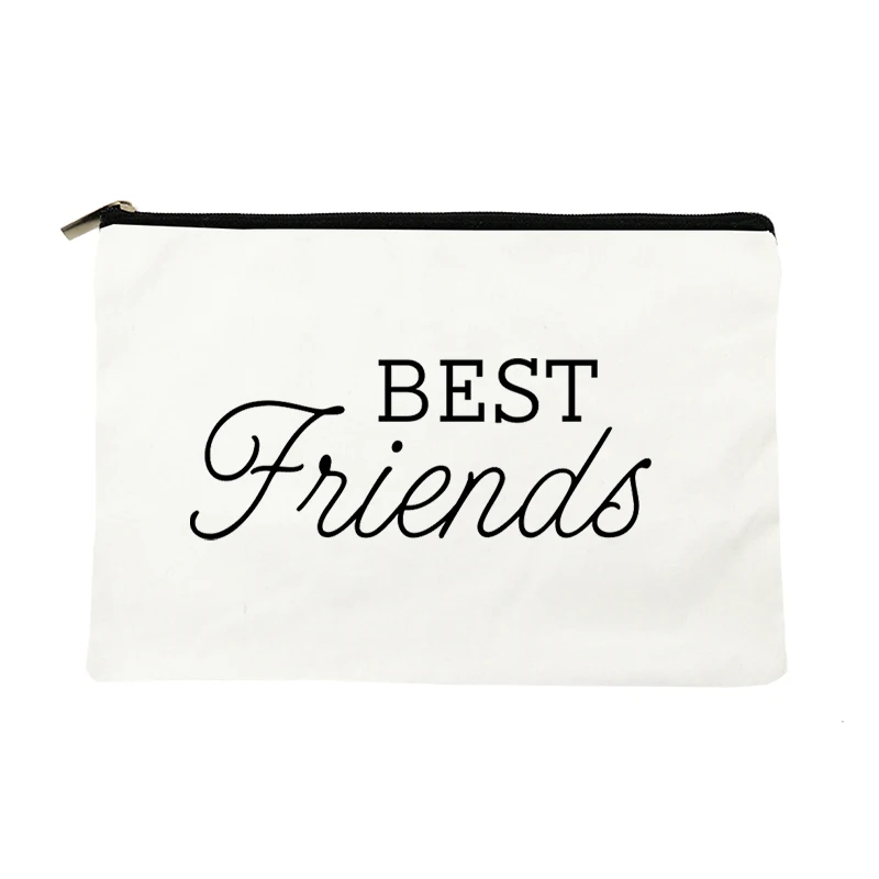 Холщовые сумки для макияжа с принтом Best Friend, дорожная Сумочка для хранения монет на молнии, косметический Органайзер, клатч для подарка другу