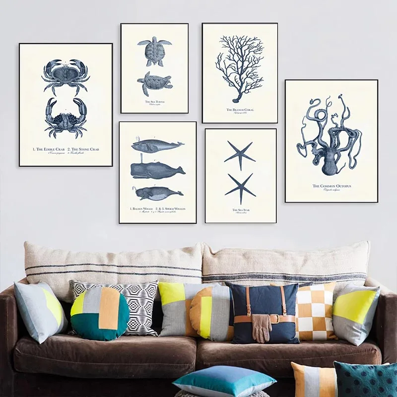 Ископаемая рыба черепаха улитка Звезда дерево Винтаж настенное Искусство Холст Картина скандинавские плакаты и печатные настенные картины для декора гостиной