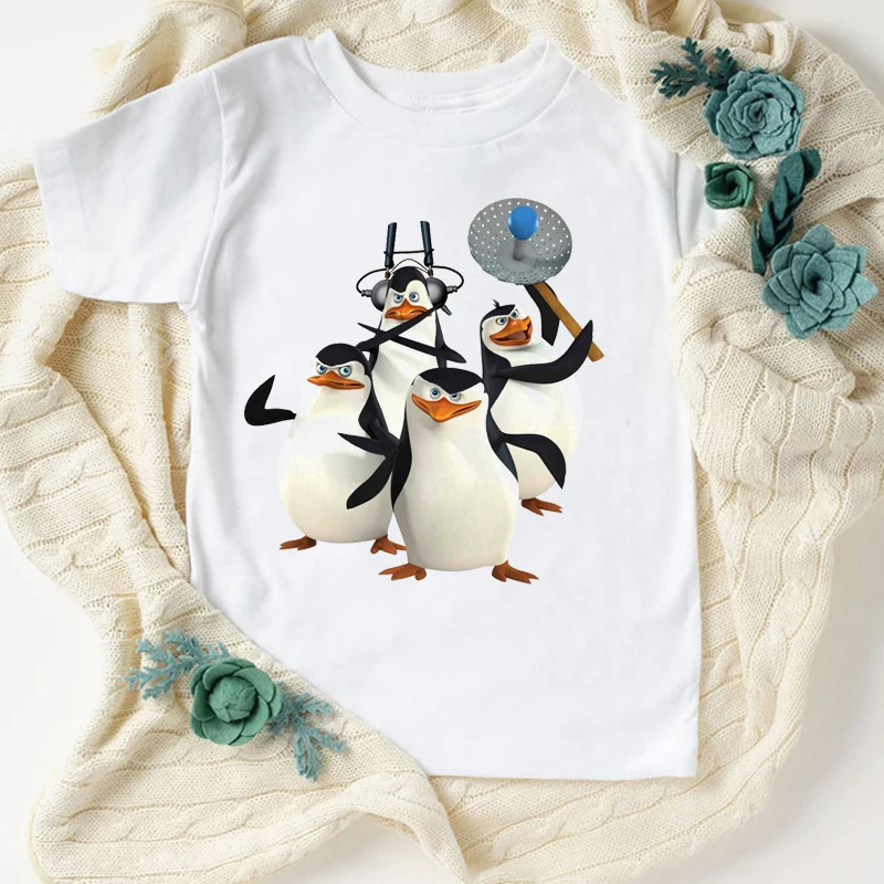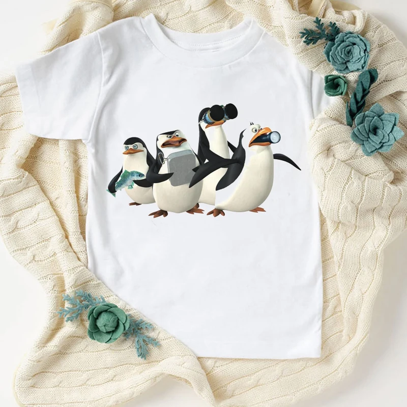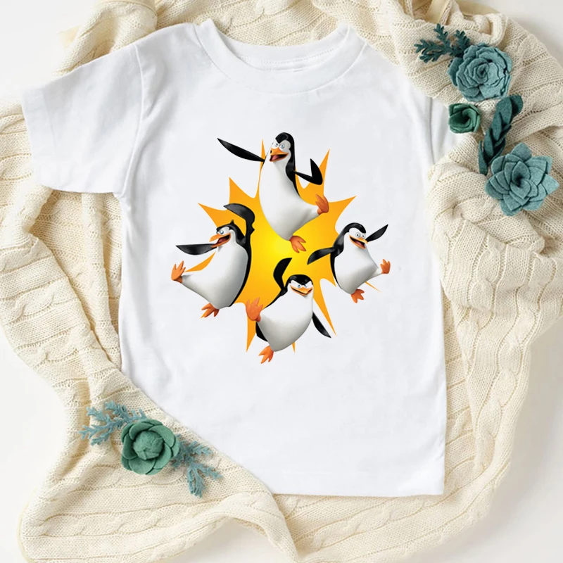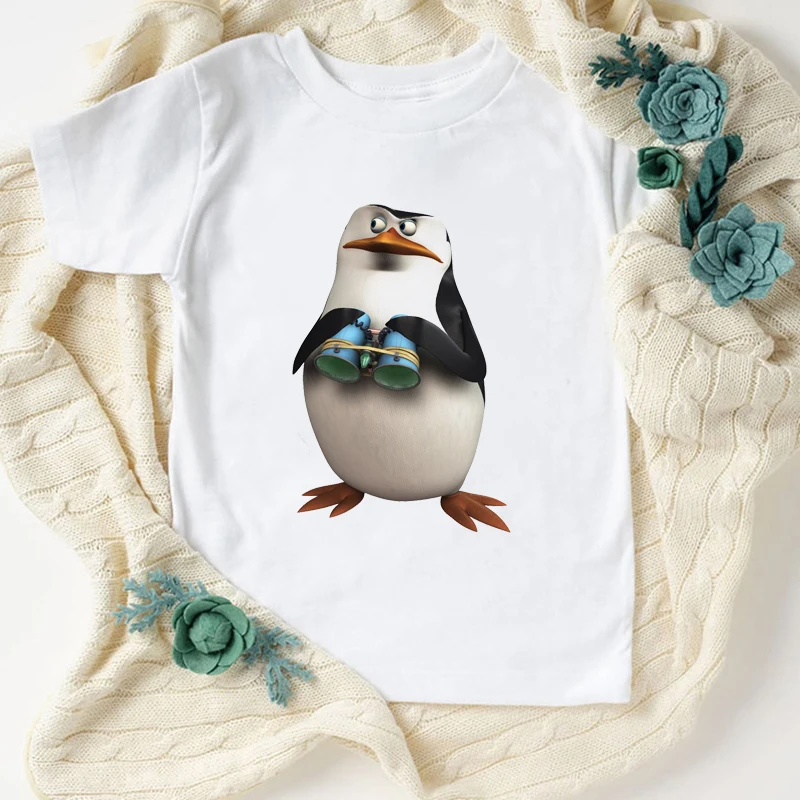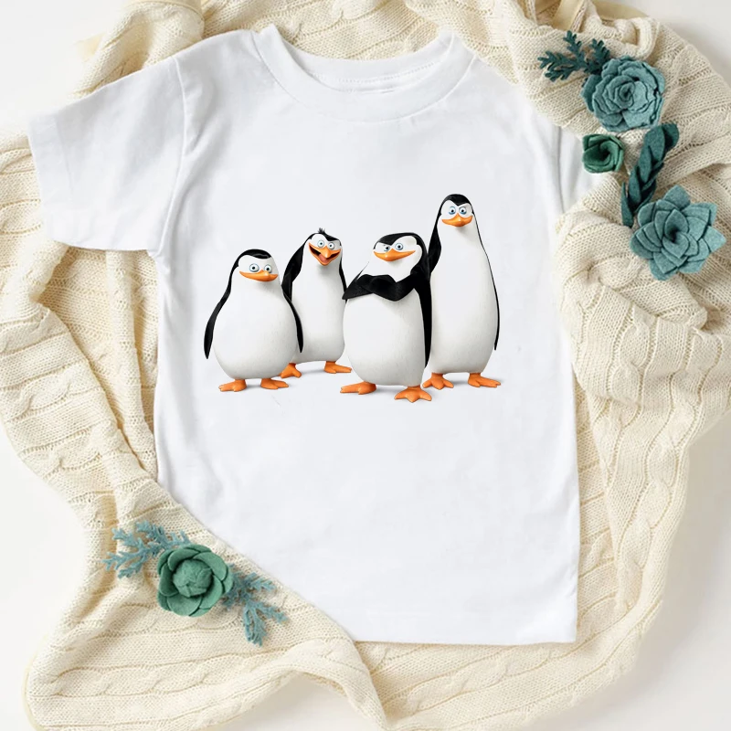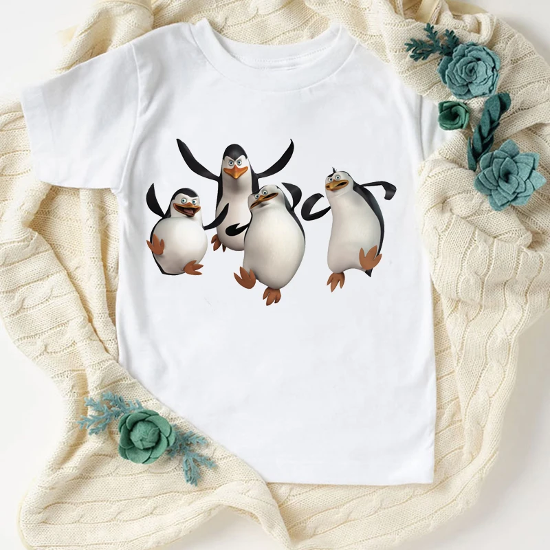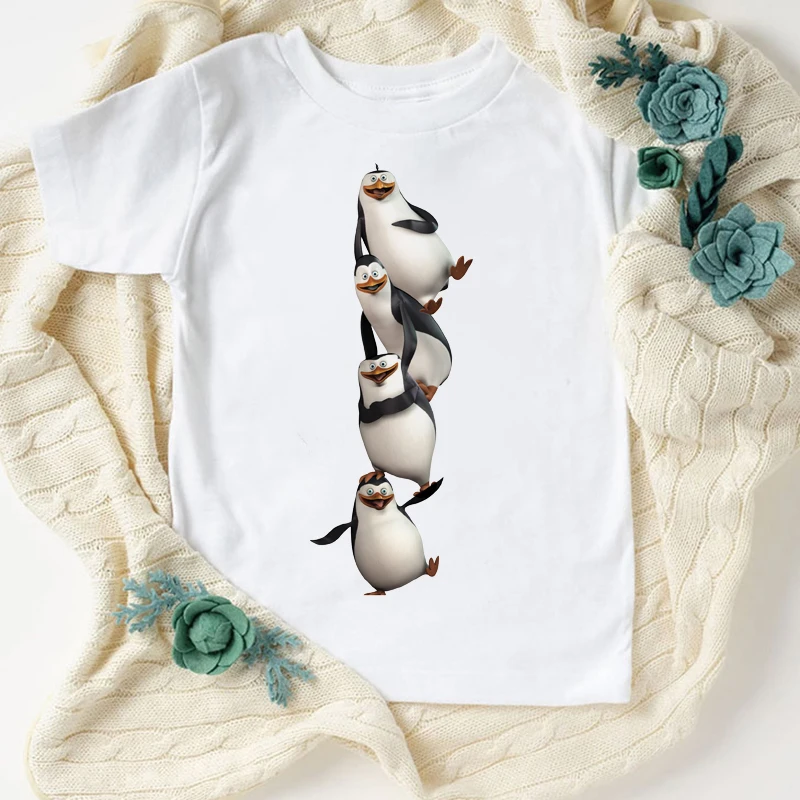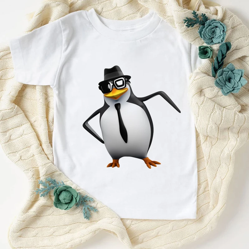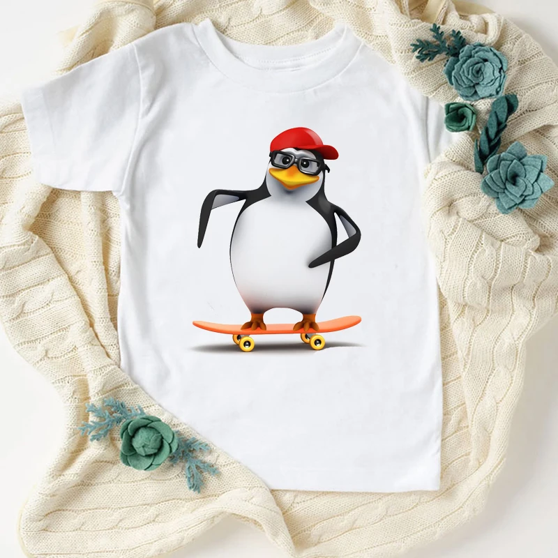 Новинка, футболка для мальчиков, Веселая детская одежда с милым мультяшным принтом пингвина, летняя модная Эстетическая футболка для девочек, кофта, белая рубашка, топы