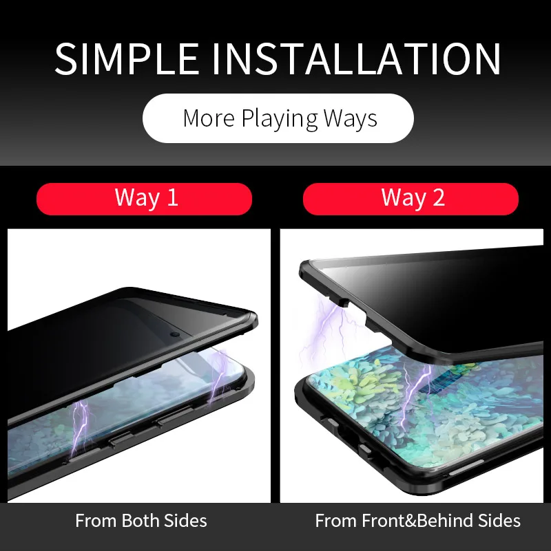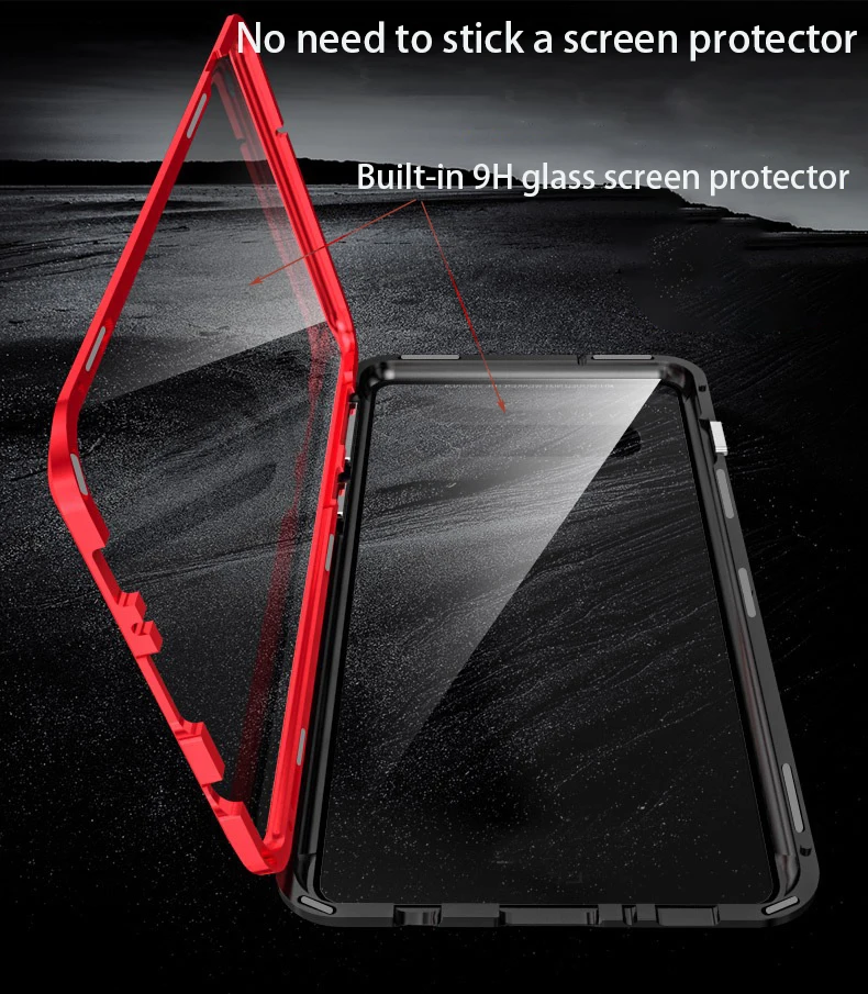 Стиль:Роскошный двухсторонний Магнитный адсорбционный металлический чехол со встроенным магнитом, легко устанавливается и снимается.