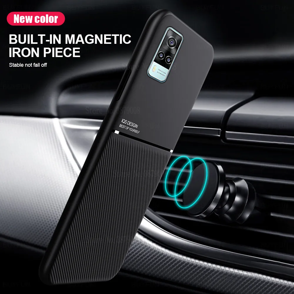 Кожаная текстура автомобильный магнитный держатель чехлы Чехол для Vivo Y31 Y 31 2021 V2036 6,58 дюйма мягкий силиконовый бампер ударопрочный чехол