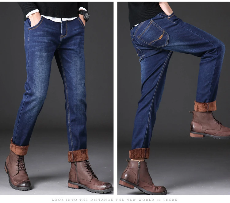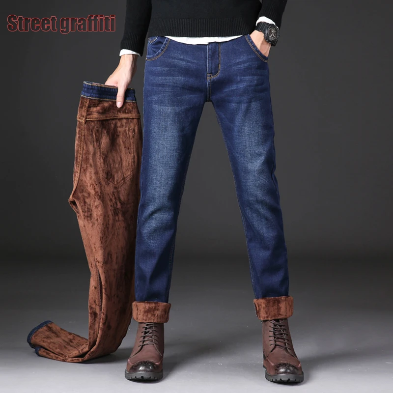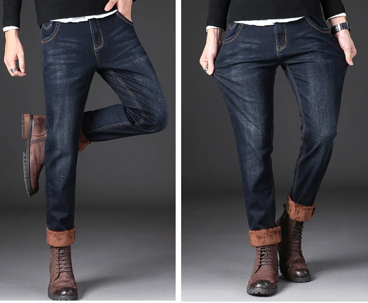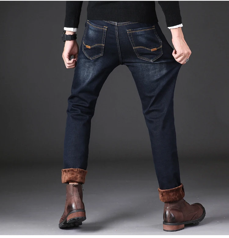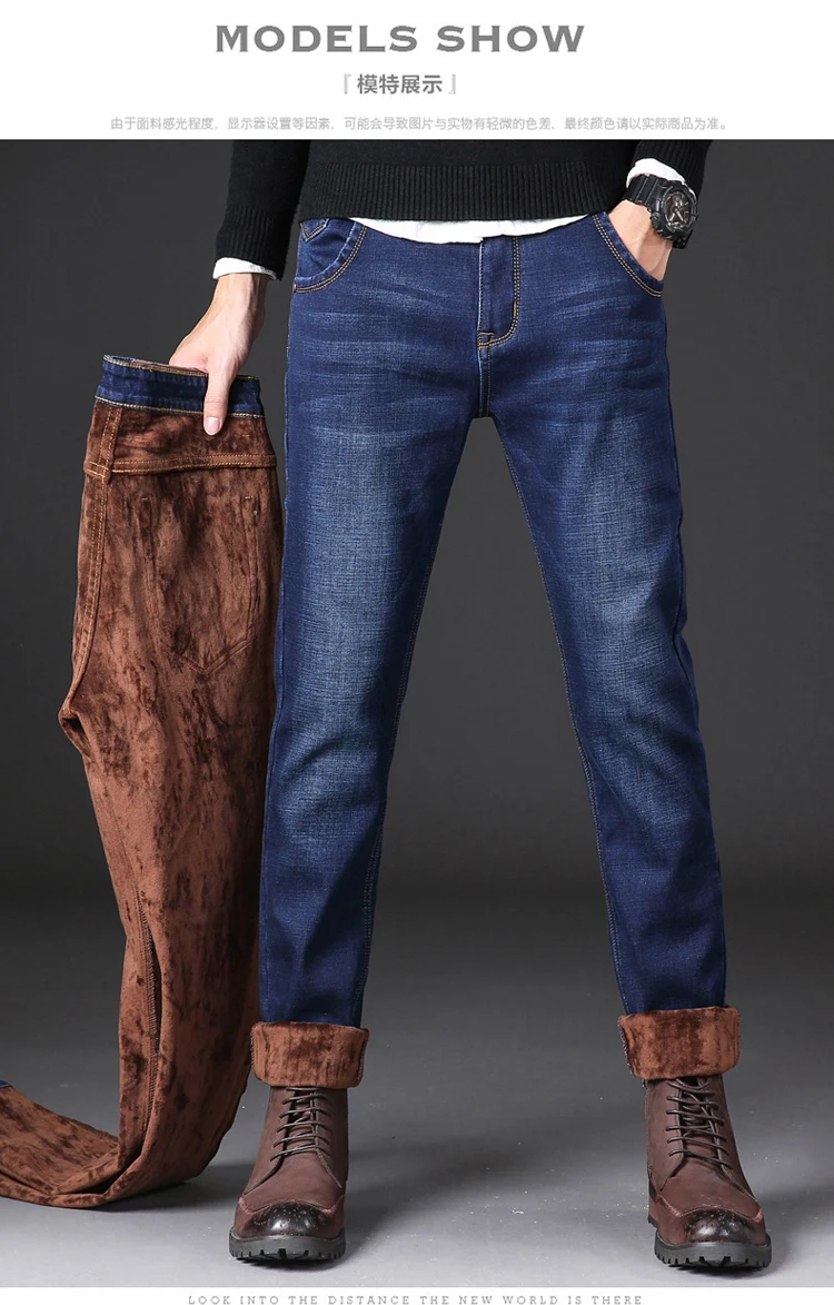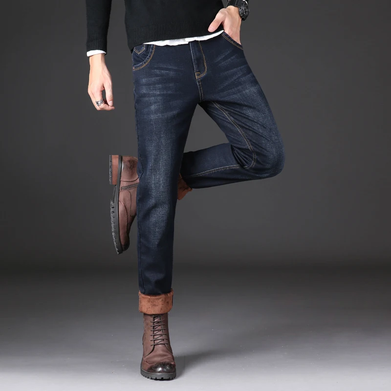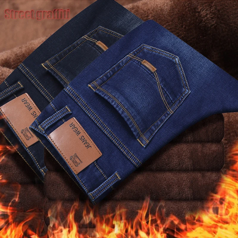 Мужские джинсы, новинка 2021, модные мужские брюки, офисные классические флисовые джинсовые брюки с высокой талией в стиле ретро, повседневные джинсы для мужчин