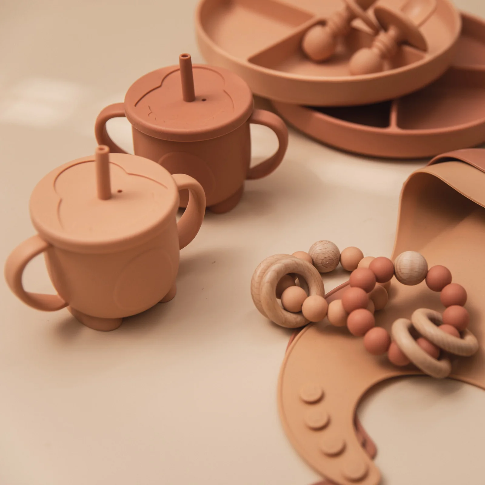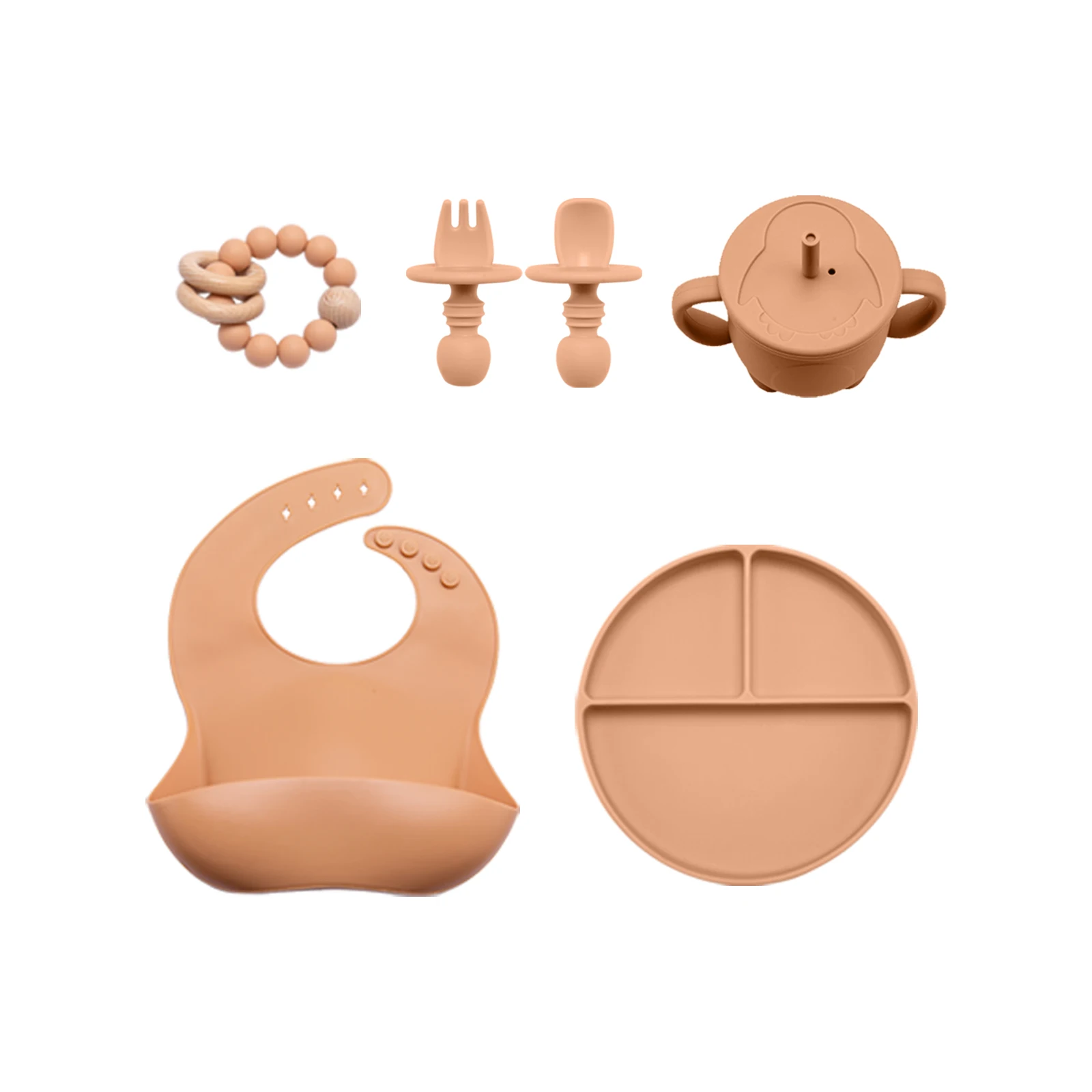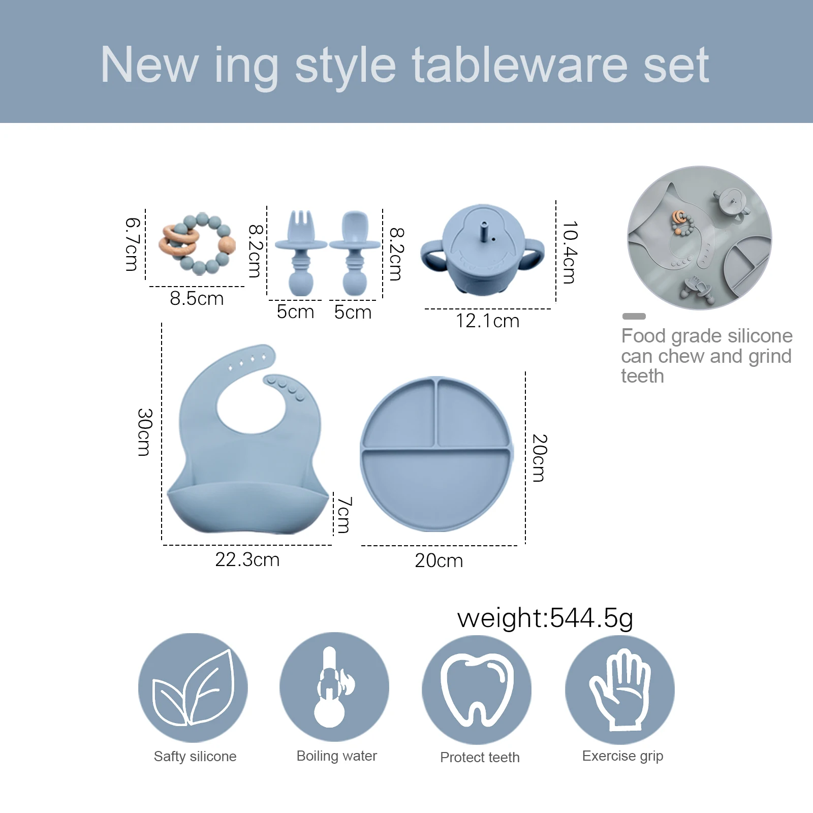 6 шт./компл. посуда для кормления детей Пищевая силиконовая чашка с отсеком нагрудник Ложка Вилка Нескользящая присоска подарок для ребенка