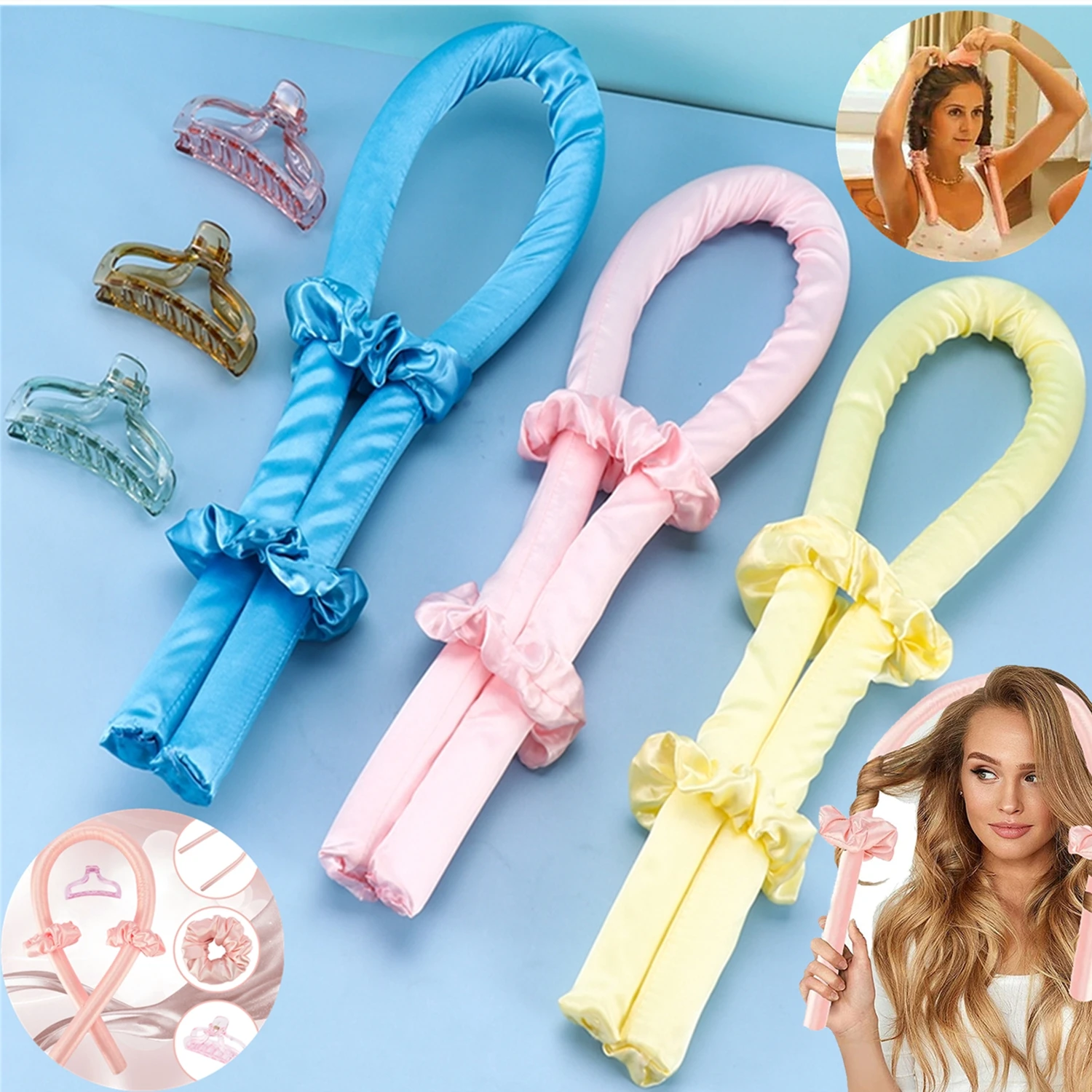 2 набора терморегуляторов для завивки волос, лента для завивки, шелковая лента для завивки волос