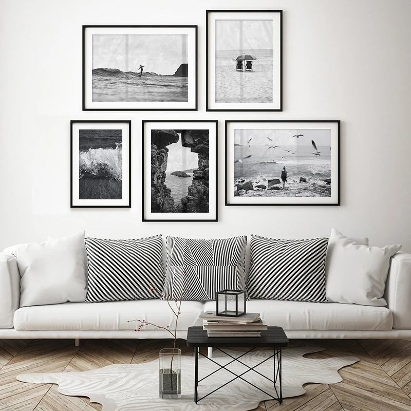 Настенный постер с изображением черного и белого пейзажа, настенная Картина на холсте с волнистыми чашками для гостиной, Современный домашний декор